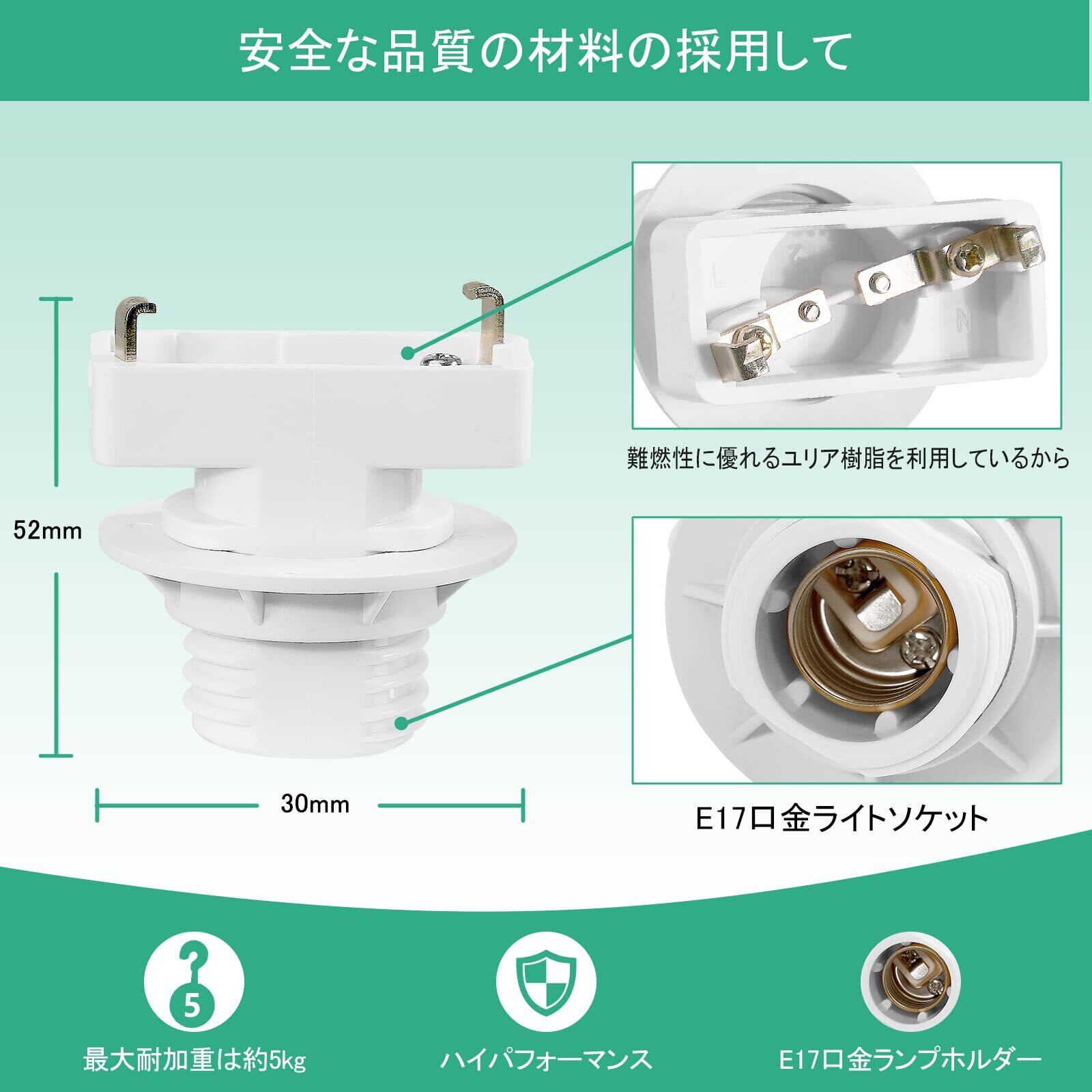 【新着商品】Aiwode角型引掛けランプソケットE17口金、引掛シーリング用 電球ソケット ランプソケット、工事不要 取り付け簡単、天井照明 照明器具の取り付けには必須な材料です PSE認証 (白い3個入り) | ニコニコSHOP