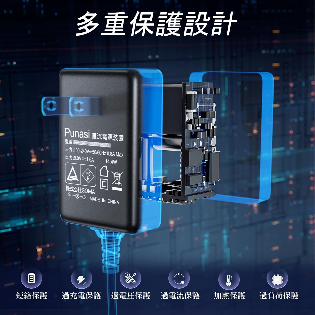 【仕様】:AC入力:100-240V 50/60 Hz DC出力:9V 1.6A 14.4W