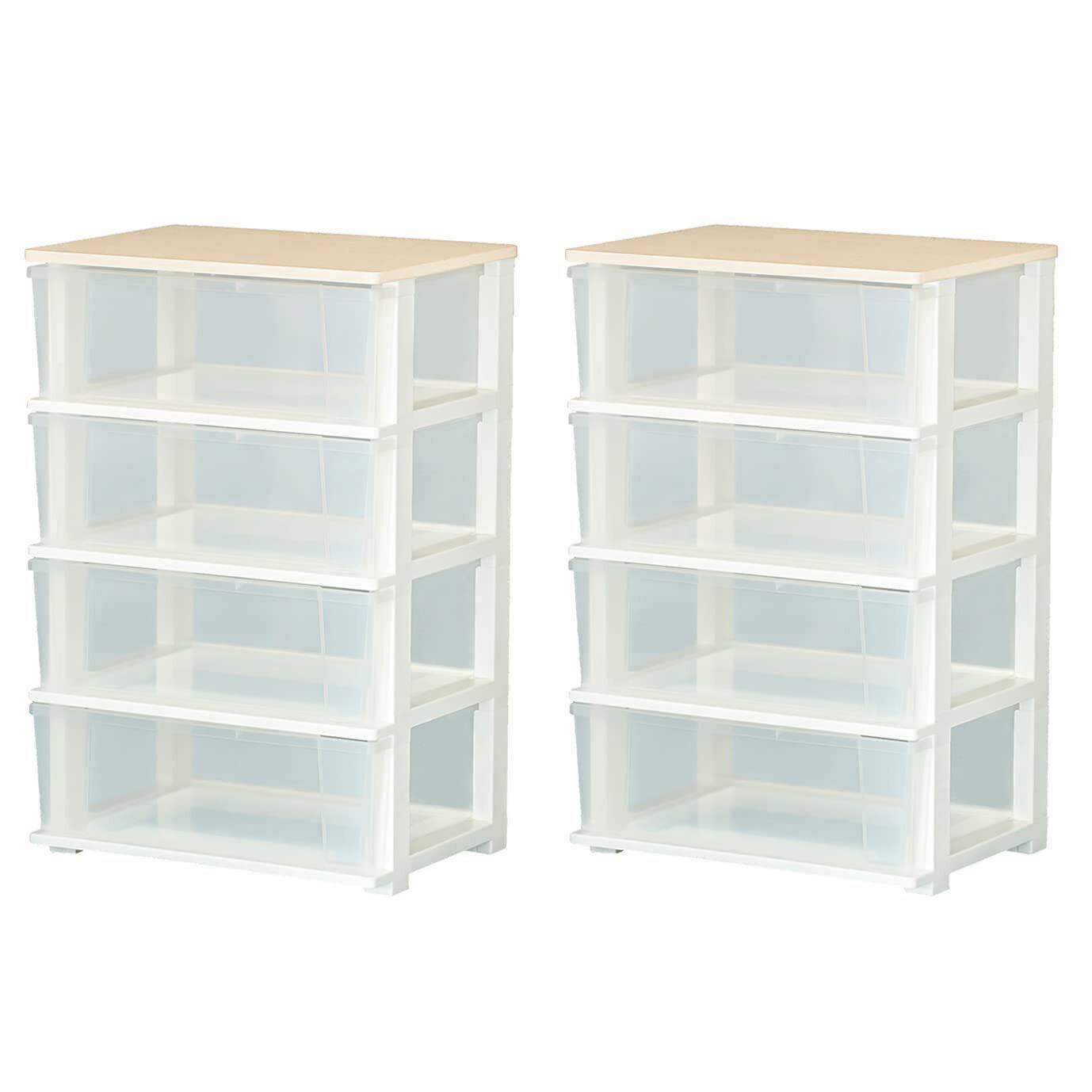 JEJアステージ 収納チェスト ピット 木製天板 ワイドチェスト 3段 クリア 日本製 簡単組み立て 幅54.5×奥行40.5×高さ64.5cm 2個セット