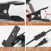 【屋内用多目的ライト】中間スイッチ付きなので、コードを抜かずに点灯/消灯ができてとても便利です。LED電球を採用した屋内用クリップランプ です。店舗やお部屋の補助照明に最適なクリップ式LEDライトです。