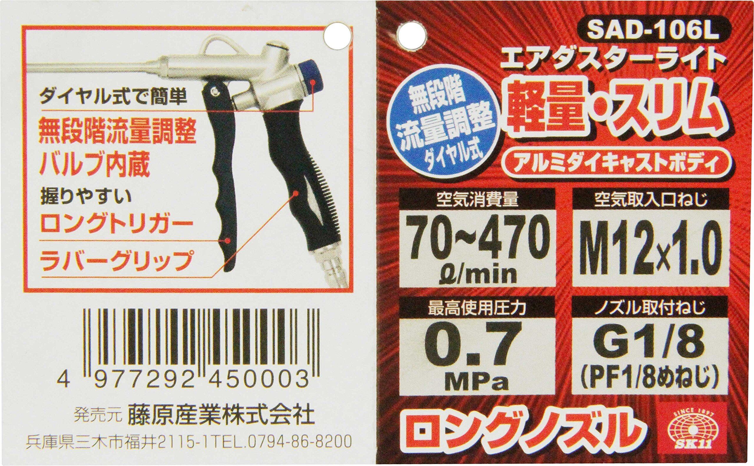 SK11(エスケー11) エアダスターライト ロングノズル・ダイヤル式流量調整 SAD-106L