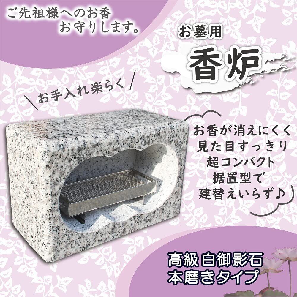 工事不要で置くだけ簡単設置のお墓用の香炉。高級白御影で作っています。