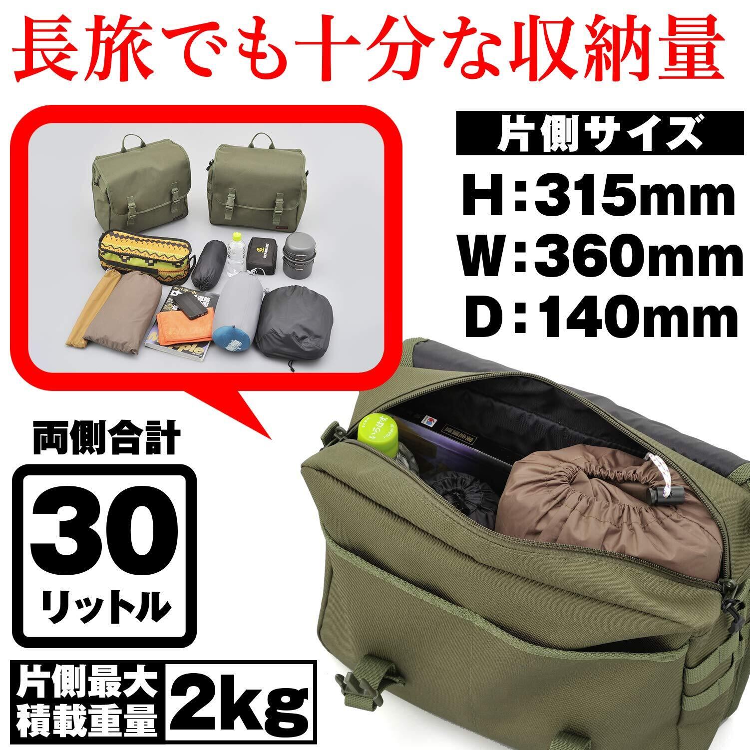 ヘンリービギンズ(Henly Begins) デイトナ バイク サイドバッグ 15L+15L 振り分け サドルバッグMIL DHS-12 グリーン 99704
