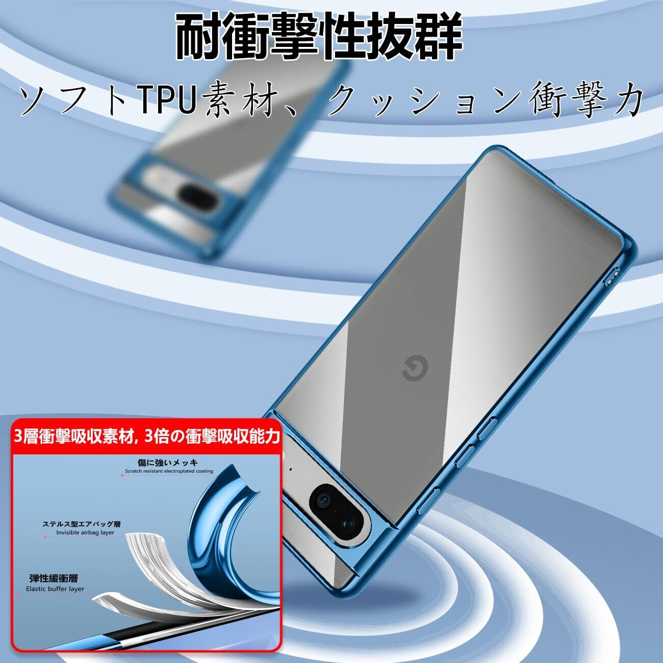 Google Pixel 8 ケース クリア 耐衝撃 ピクセル 8 カバー 透明 メッキ加工 可愛い ワイヤレス充電 薄型 柔らかい 軽量 TPU 黄変防止 ファッション ソフトケース 人気 保護カバー(ブルー)