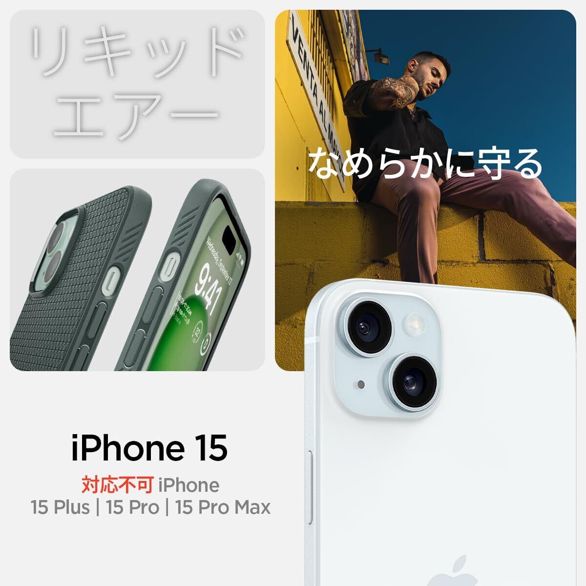 Spigen 【創業18年の技術力】 iPhone 15 ケース 耐衝撃 薄型 ストラップホール 軽量 さらさら 米軍MIL規格取得 2重構造 レンズ保護 指紋防止 擦り傷防止 マット仕上げ ワイヤレス充電対応 リキッド・エアー ACS06792 (アビス・グリーン)