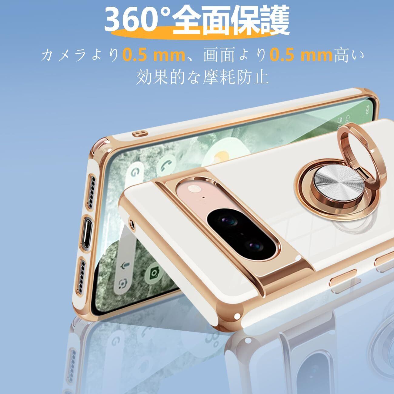 【人気商品】Google Pixel 8 ケース リング付き リング 米軍MIL規格 耐衝撃 ピクセル8 カバー メタリックな質感 磁気吸着 携帯カバー TPU 軽量 人気 スタンド機能 車載ホルダー対応 360°回転 黄変防止 指紋防止(ホワイト) | ニコニコSHOP