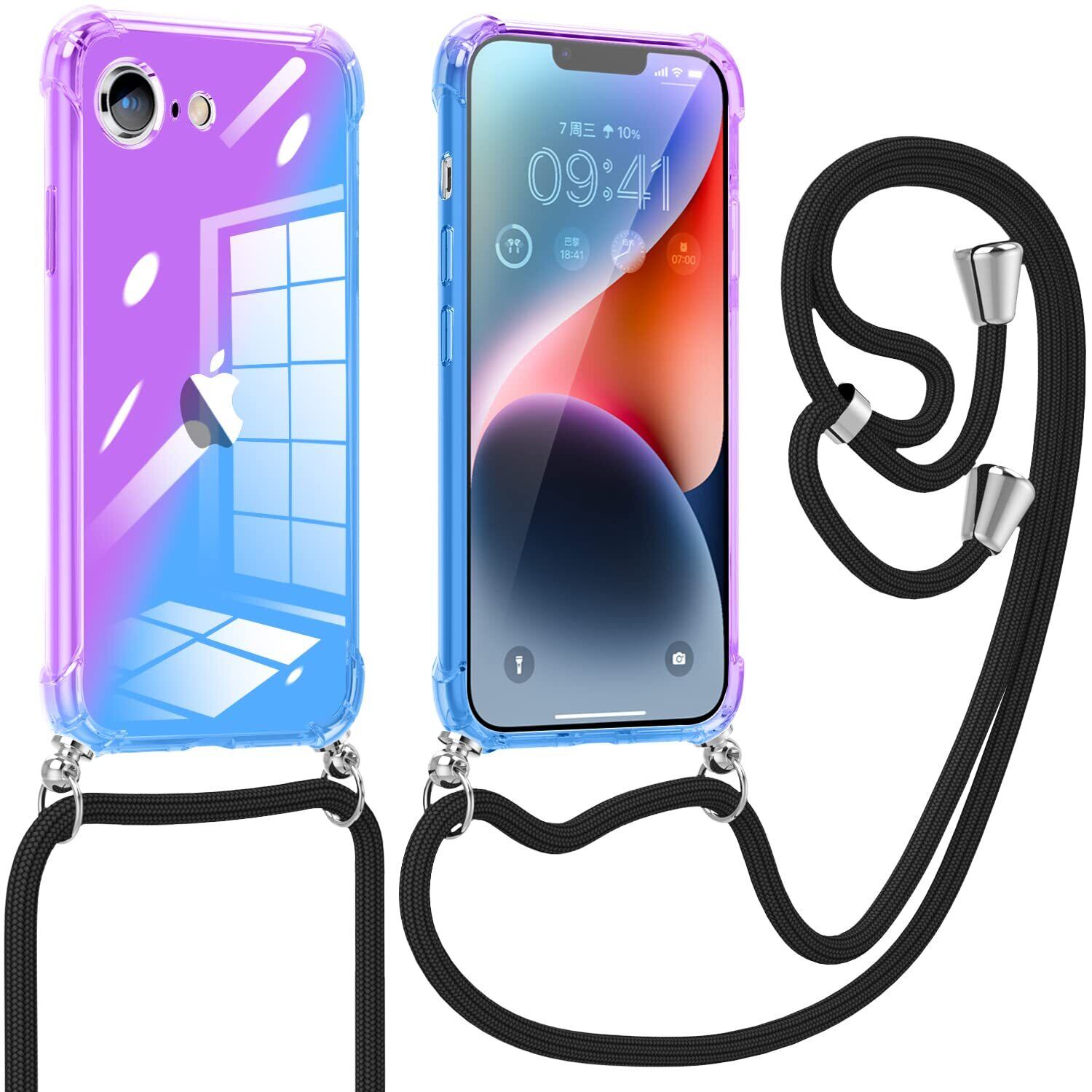 iPhone SE 第3世代 ケース 2022 iPhoneSE 第2世代 ケース iPhone8 / 7 ケース クリア ソフト TPU グラデーションケース 耐衝撃 薄型 肩掛け 斜めかけ 縄掛けケース 黄変防止 軽量 一体型 かわいい ファッション 携帯カバー パープル/ブルー AYS-9-25