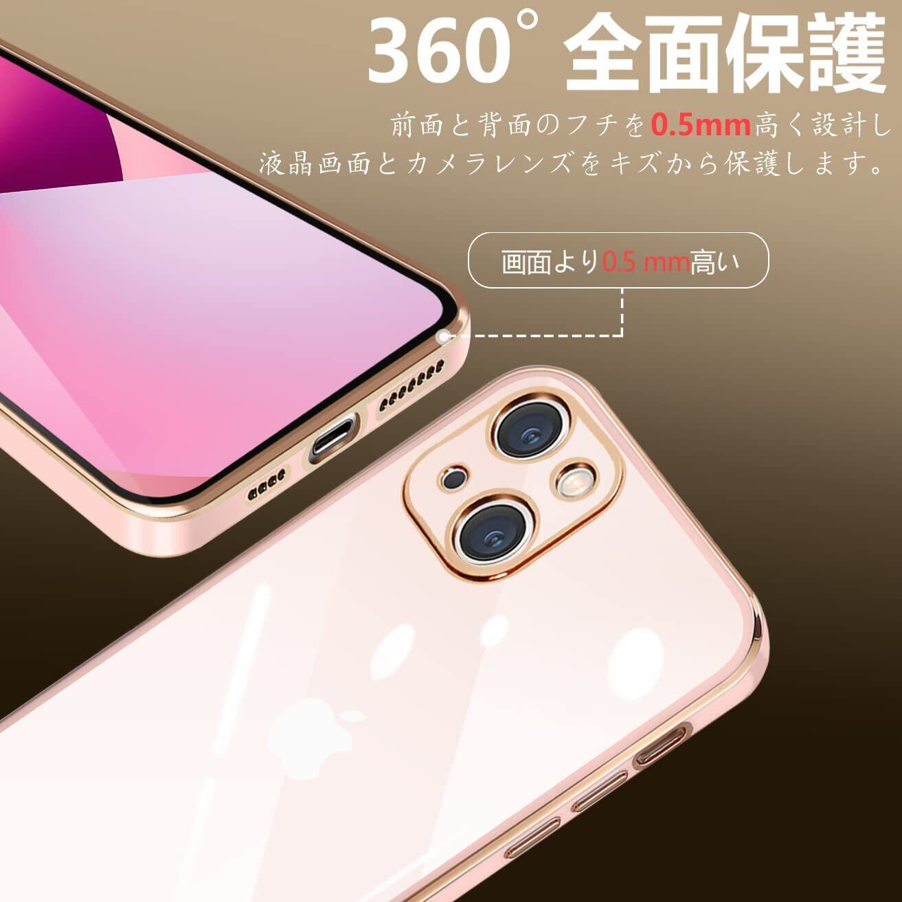 iPhone13 mini ケース クリア 透明 アイフォン13mini カバー スマホケース 全面保護 耐衝撃 TPU ソフト 薄型 メッキ加工 ストラップホール付き 落下防止(ピンク)