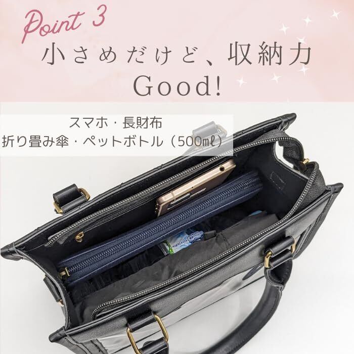 素材:PUレザー・PVC サイズ:横24cm×縦20cm×厚さ10cm クリアポケット:横19cm × 縦13cm ※ 製造工程上クリア部分の内側に縫い付けられた白い不織布が残っている場合がございます。手で除去することも可能ですが、完全に除去することは難しくなっております。何卒ご容赦下さい。