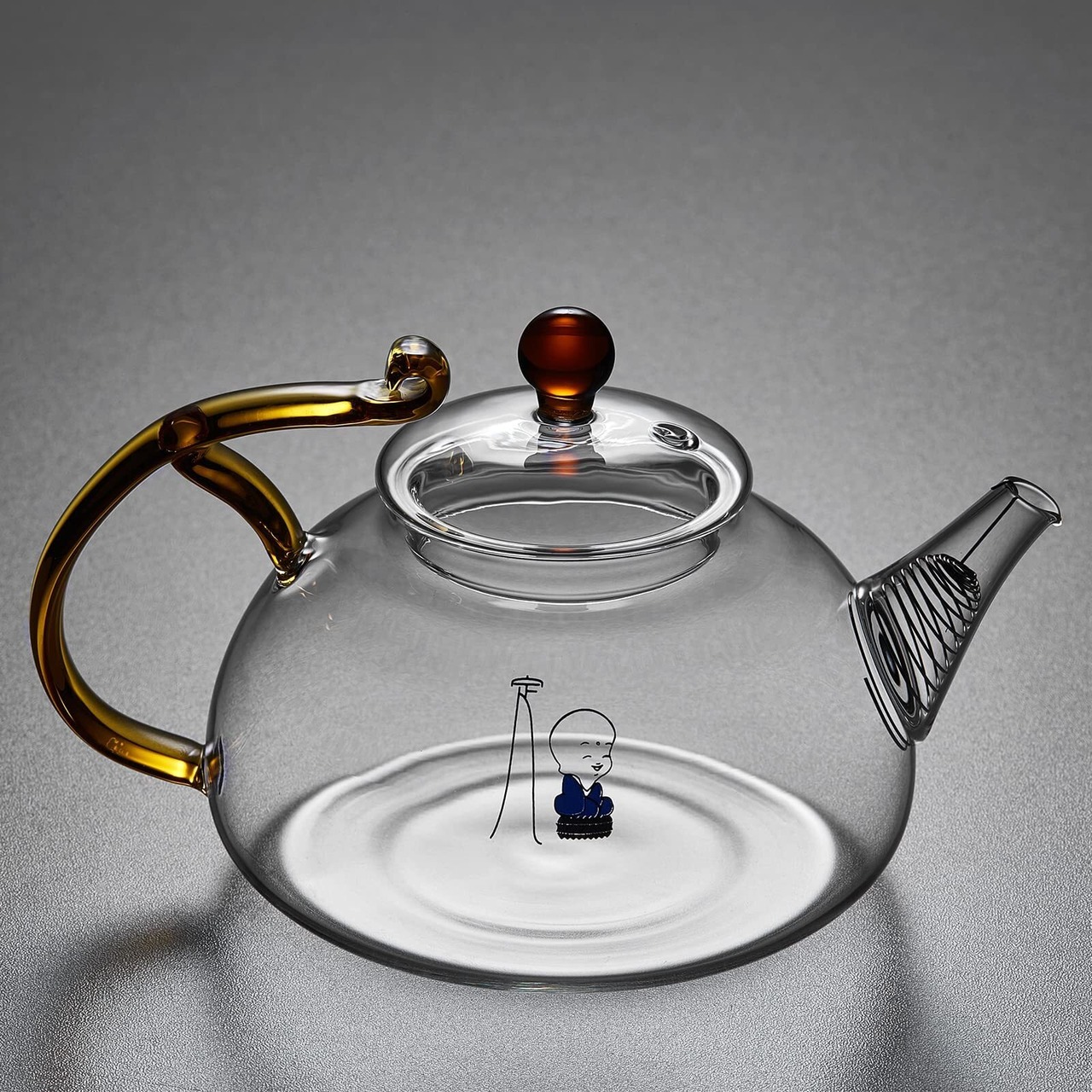 【新春セール】ポカロティー ガラス急須 ティーポット 耐熱ガラス 透明 割れにくい ガラス製ポット 禅 お坊さん 丸型 茶壺 紅茶 緑茶 フルーツティー リーフティー 茶こし付き 直火対応 720ML | ニコニコSHOP