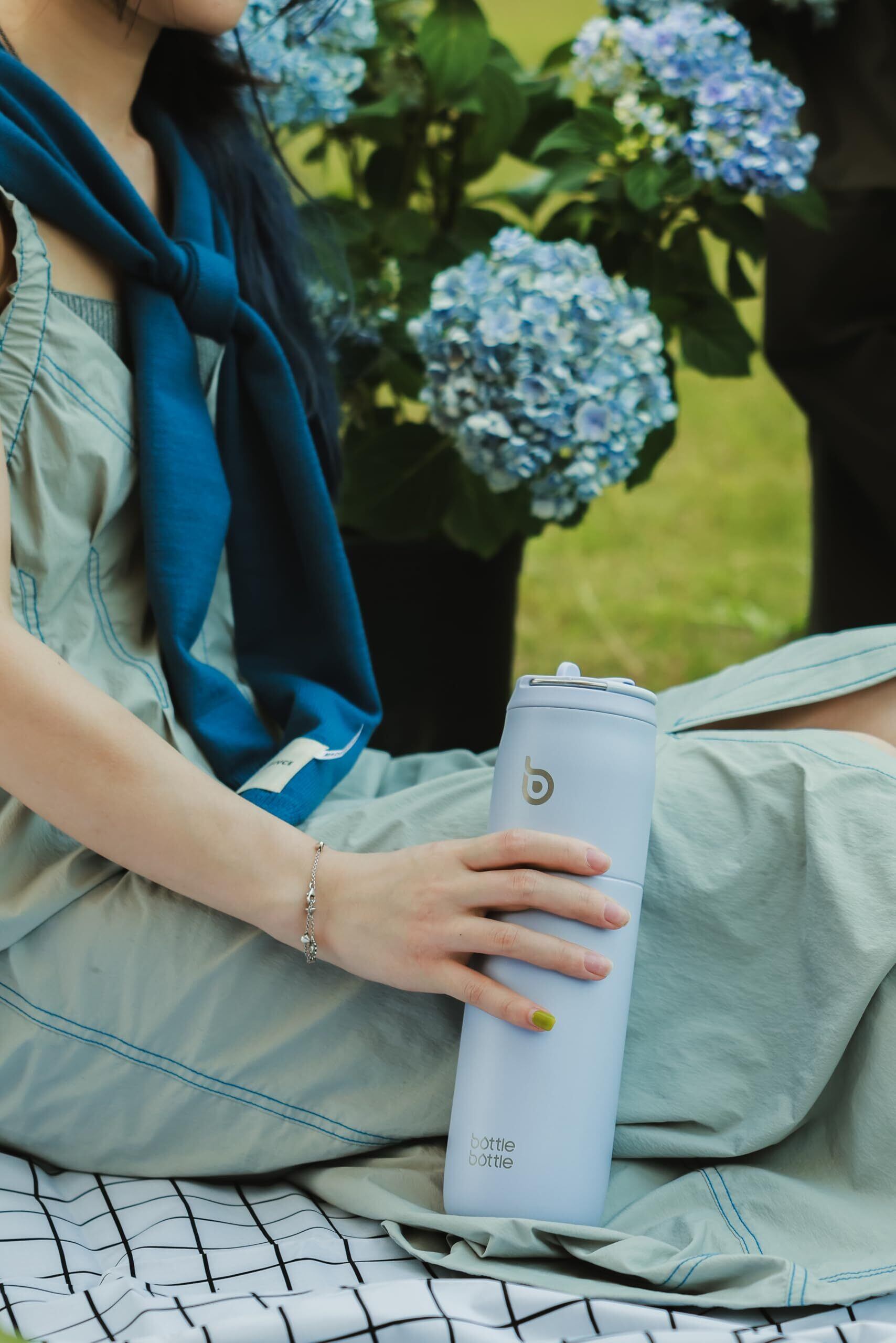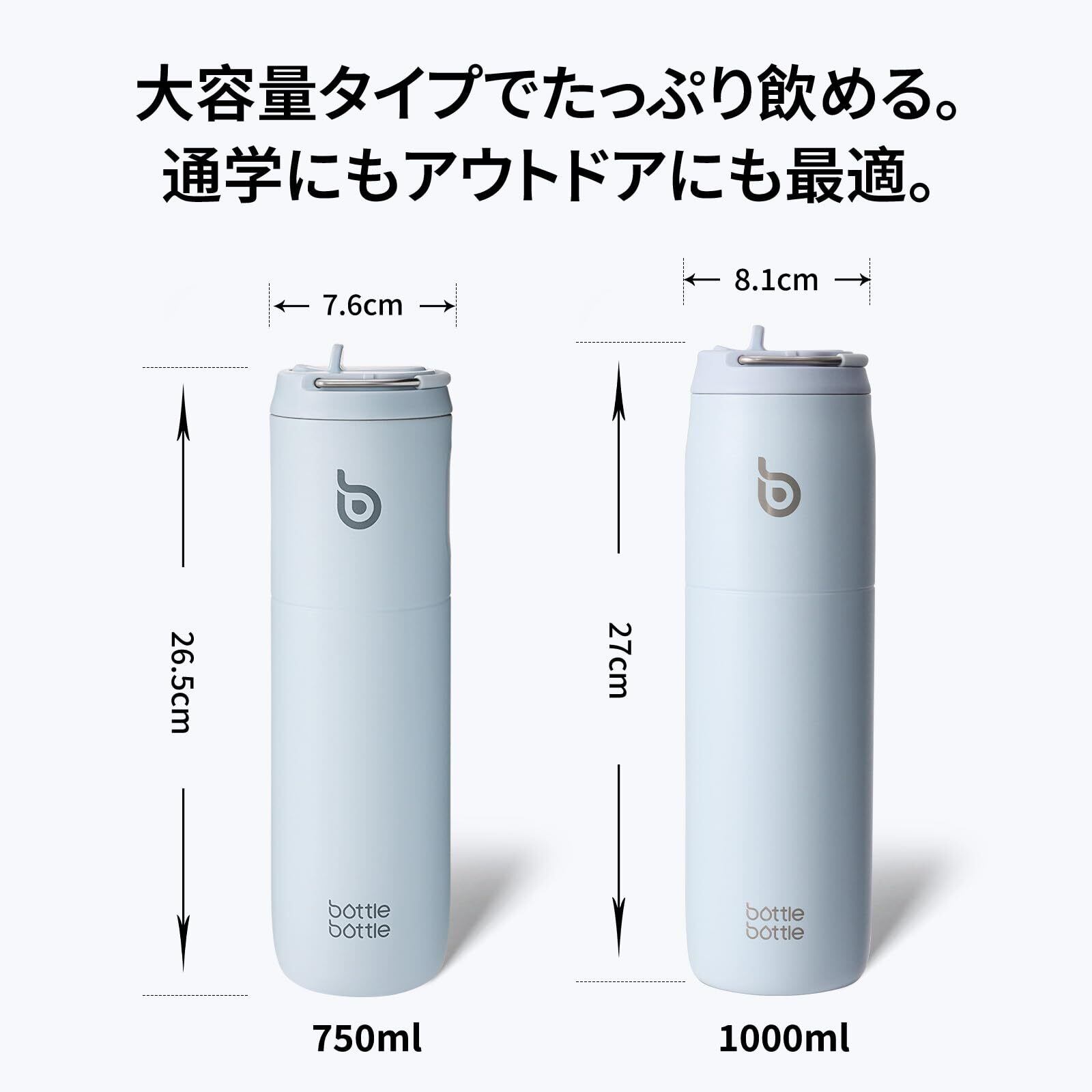 BOTTLE BOTTLE 水筒 1リットル 大容量 1000ml ストロー付き 直飲み 保温保冷 真空断熱 子供 大人 持ち手付き おしゃれ 1L ボトル ステンレス 魔法瓶 二重構造 女の子 男の子 持ち運び スポーツ アウトドア ライトブルー