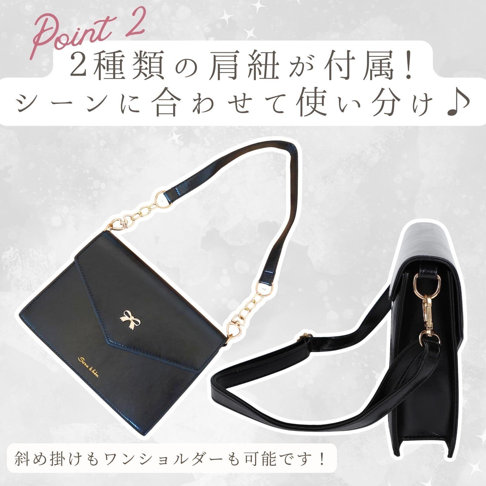 2本の肩紐が付属しており、シーンに合わせてご利用いただけます。表と裏で異なるデザインで、普段使いにも便利です!