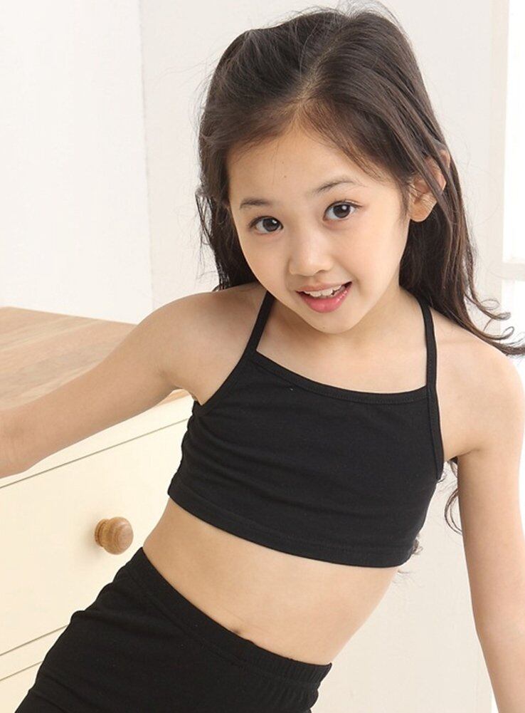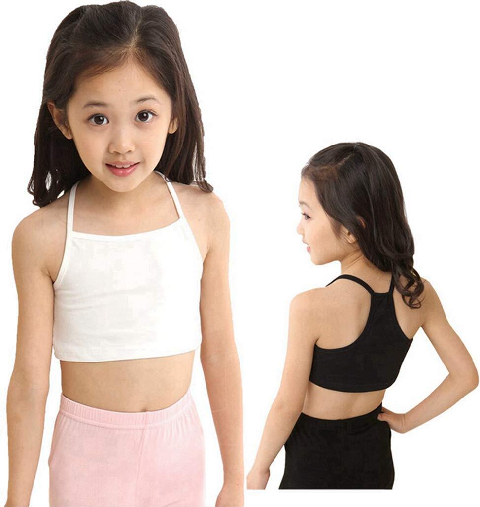 [InSomila] [インソミラ] 子供服 2着セット ハーフトップ タンクトップ キッズ 女の子 ダンス ヒップホップ スポーツ インナー 小学校 重ね着 キャミソール 黒 白