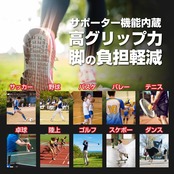 【嬉しい機能が詰まったソックス】《足裏部分》滑り止めゴムを採用しているため、運動中に靴の中で靴下がズレる心配がありません。また足裏には厚手のタオル生地を使用しているのでクッション性や耐久性にも優れています。《足の甲部分》通気性に優れたメッシュ生地を織り込んでいます。長時間の着用や激しい運動をしても、靴下の中でムレなどを感じずに快適にお過ごしいただけます。《足首部分》長めに設計された足首部分は、運動中の怪我から足を守る役割があります。また、縦縞に縫ってあることで窮屈さを感じることなく、足首をサポートします。