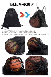 【利便性】フロントの下部分にボールメッシュ袋が収納されています。5号球、6号球、7号球のバスケットボールが収納できます。サッカーボール入れやバレーボール入れにも幅広く対応でき。主袋と隔離して、清潔で衛生的です。使用しない場合は、隠しメッシュポケットに入れて折りたたんでください。