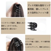 クリップポニー着け方:1.ウェーブタイプなのでお手元に届いてから好きなボリュームにほぐしてください。2.ポニーテールウィッグを毛先からブラッシングし整えておきます。3.ゴムの上の自毛をクリップポニーウィッグではさんで留めます。
