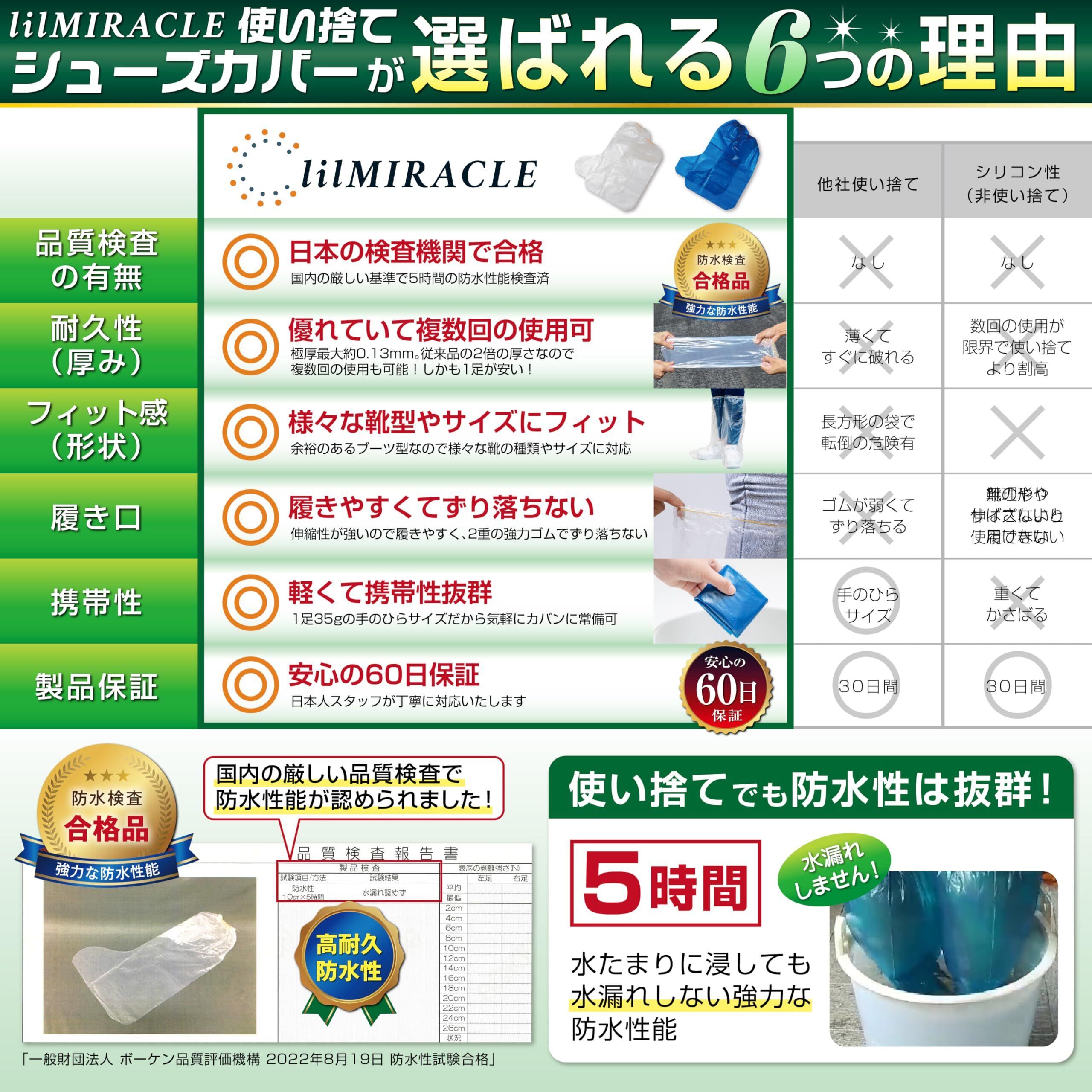 [lilMIRACLE] シューズカバー 靴カバー 【国内検査済み】 足カバー 使い捨て 防水 極厚 レインシューズカバー