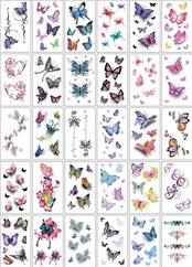 タトゥーシール ボディーシール 防水 TATTOO 30枚セット 蝶 3D ちょうちょ ハート 桜 楔 004