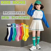 [InSomila] [インソミラ] 選べる11色 子供ソックス ラインソックス キッズ ハイソックス 靴下 リブ編み ボーダーソックス ニーハイ チーム衣装 運動会 目立つ 蛍光色