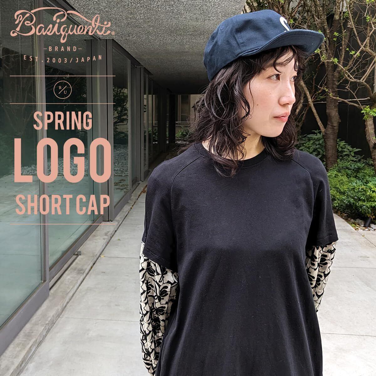 [ベーシクエンチ] Spring Logo Short Cap アンパイヤキャップ 帽子 ショートつば 小つば Sロゴ 吸水速乾 レディース メンズ フリーサイズ ビッグサイズ
