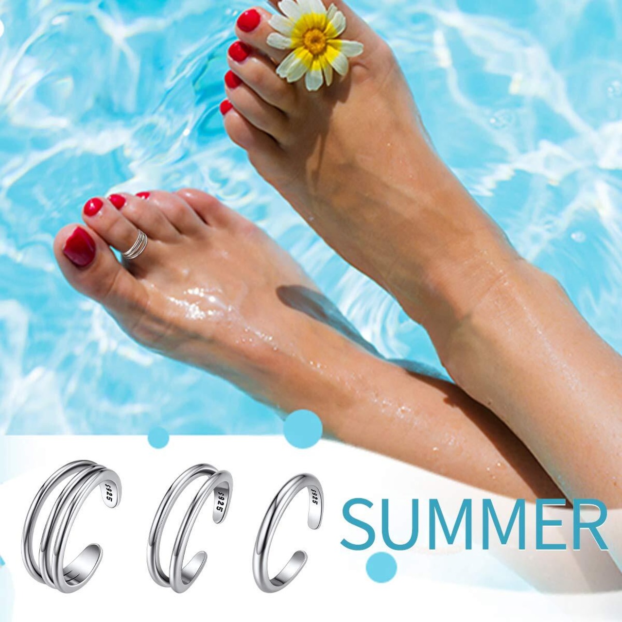 [足指もオシャレに!] 足のサイズを気にせずお使い頂けるかわいいシルバー925トゥーリングです。サンダルなど、裸足のシーンが増えるこれからの季節にぴったり。