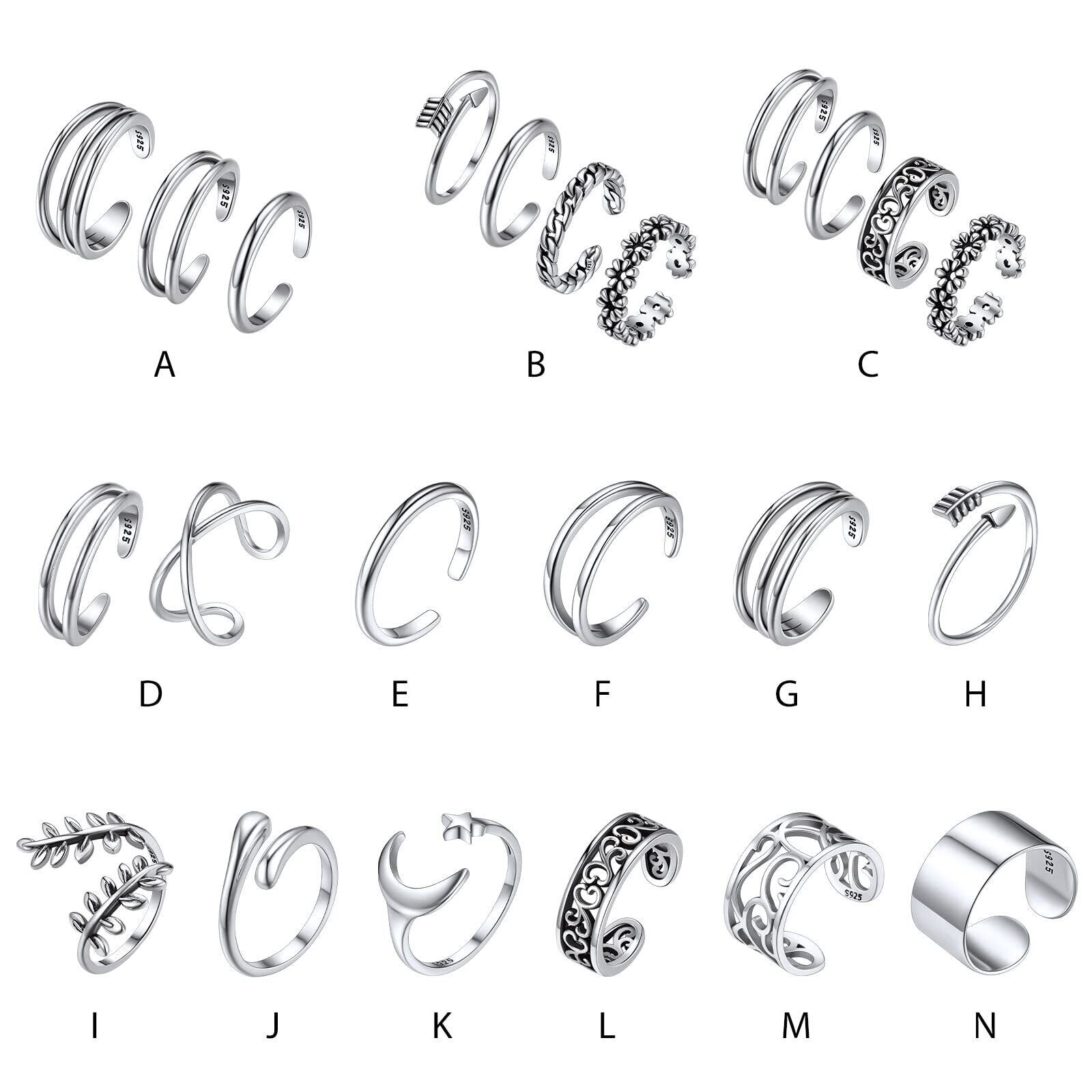 [ChicSilver] シルバー925 トゥリング レディース かわいい フリーサイズ 3点セット 甲丸 2連 3連 ミディリング ハワイアンジュエリー