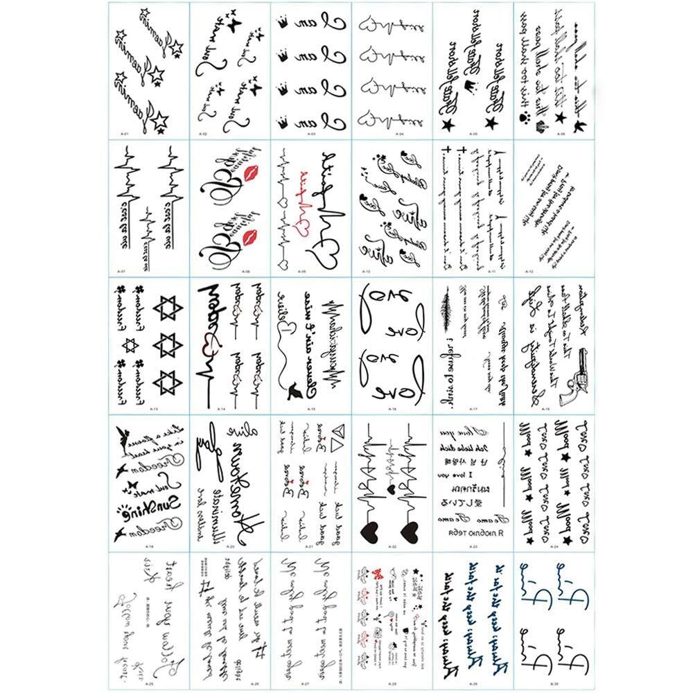 【特価商品】Yesallwas タトゥーシール 文字 英語 30枚セット かわいい 英文字 タトゥー リアル 防水 長持ち 入れ墨シール タトゥーステッカー ボディーシール メンズ レディース 刺青シール cute tattoo 5.7cm×9.7cm (A) | ニコニコSHOP