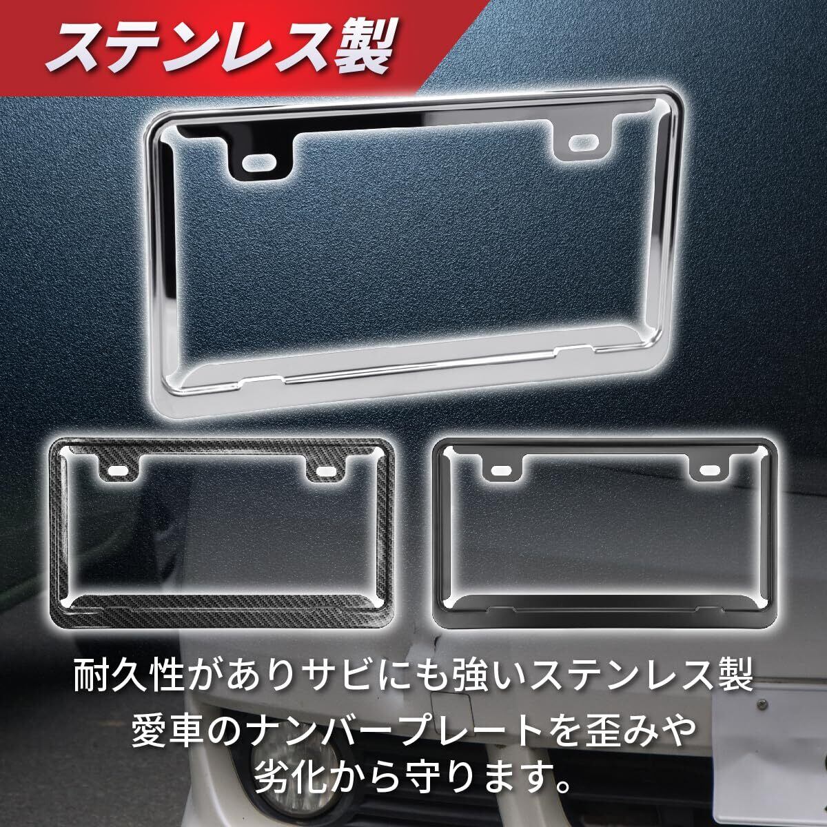 【セット内容】フレーム×2枚 ネジ×4本 ワッシャー×4個 ネジキャップ×4組 【サイズ(約)】34.5cm×19.2cm 【カラー】シルバー・ブラック・カーボン※お好みのカラーをお選びいただけます。 【材質】ステンレス製 ※本製品は《Anniversary》のオリジナル商品となるため、包装や改良の為仕様変更を行うことがございます。お客様にご迷惑をかけぬ様、他出品者様の当カタログでの出品はご遠慮ください。