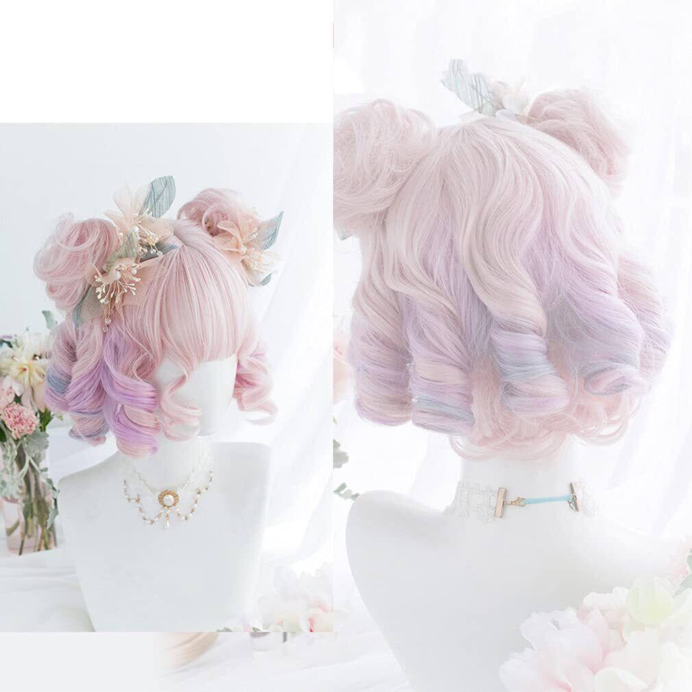 【特価商品】原宿風 GAL系 ウィッグ ロリータ コスプウィッグ 耐熱 レディース (ピンク) メッシュ ロング 巻き髪 お団子ヘア ゴスロリ 森ガール ゆめかわいい お姫 小顔 パーティー 仮装 日常 かつら wig | ニコニコSHOP