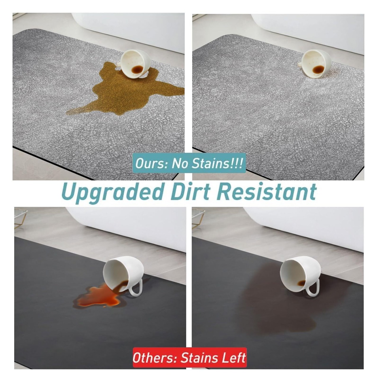 【商品仕様】・サイズ:約60cm*40cm*0.4cm ・四層構造:1.超極細繊維透水層(毛髪がつかない)、2.珪藻土吸水層(吸水性抜群)、3.再生スポンジ(足触り快適)、4.滑り止めシリコン層(ケガ防止)。柔らかくてスポンジを踏むような感覚で、冷たさの心配もありません。