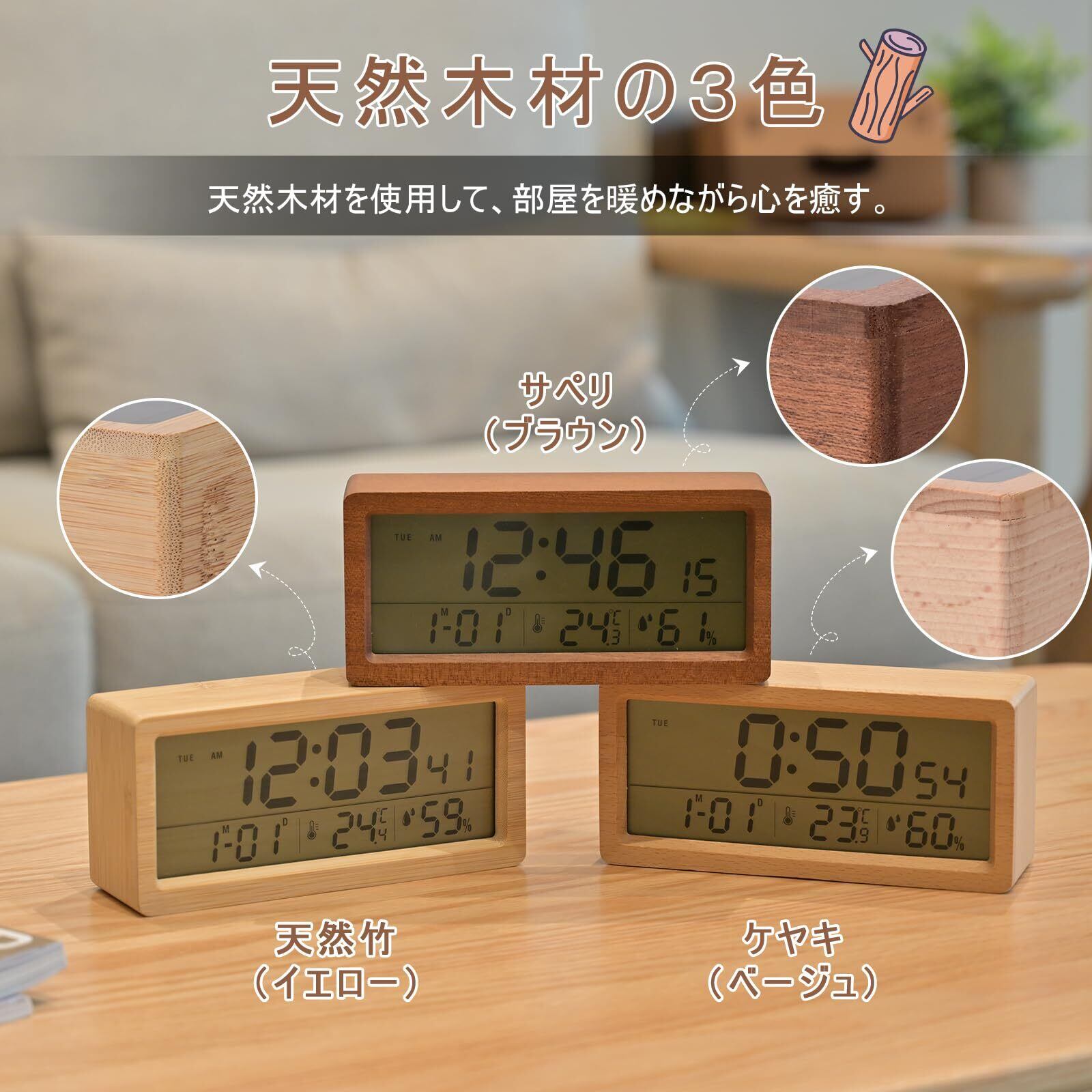 【在庫セール】デジタル目覚まし時計 電池式 木製置き時計 き湿度と温度検出電子時計 LCD 持ち運びが容易、寝室、ベッドサイドテーブル、机、オフィス、子供、家族に適しています(ナチュラル) | ニコニコSHOP