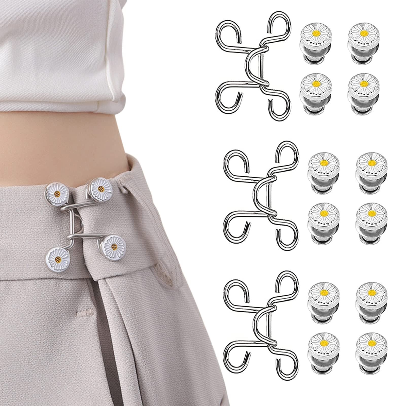 【人気商品】[YFFSFDC] ウエスト調整ボタン27mm3セット ジーンズ 調整 リベット付き 縫い目ない ウエストバックル ゆるゆるのジーンズ/ズボン/スカート/Tシャツ/パーカーなどを調節する取り外し可能ボタン 調節可能 交換用 (シルバーデイジー) | ニコニコSHOP