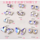 【50個セット】セット内容:ネイルパーツハート8mm×9mmの15個、11mm×12.3mmの15個、楕円形、三角形など20個(上の写真参照)。合計50個入。独立したボックスに入っているため、収納が簡単で便利です。