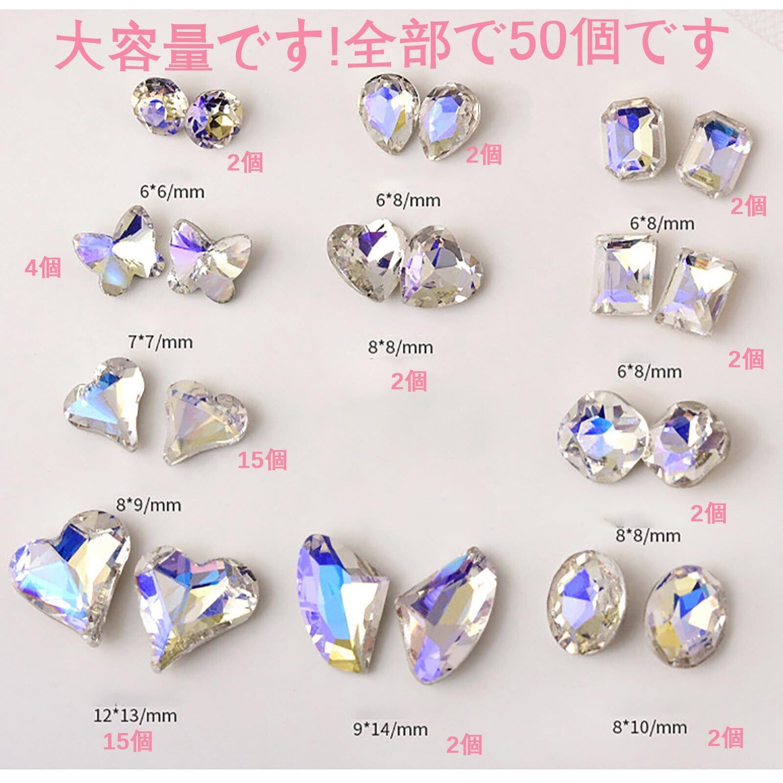 【在庫処分】50個セット ネイル ガラスストーン オーロラ色 30個 2種類 ネイルストーン ハート+20個 9種類 ネイルパーツ ハートストーン 輝くそして透明な ネイルクリスタル 大きい ラインストーン ネイルストーン ダイヤモンド ネイルパーツ ジェムラインストーンネイル キュートハート型 ネイルストーン 8mm 11mm ミックスサイズ 3d ネイル アートデコレーション ネイルアートパーツ DIY | ニコニコSHOP