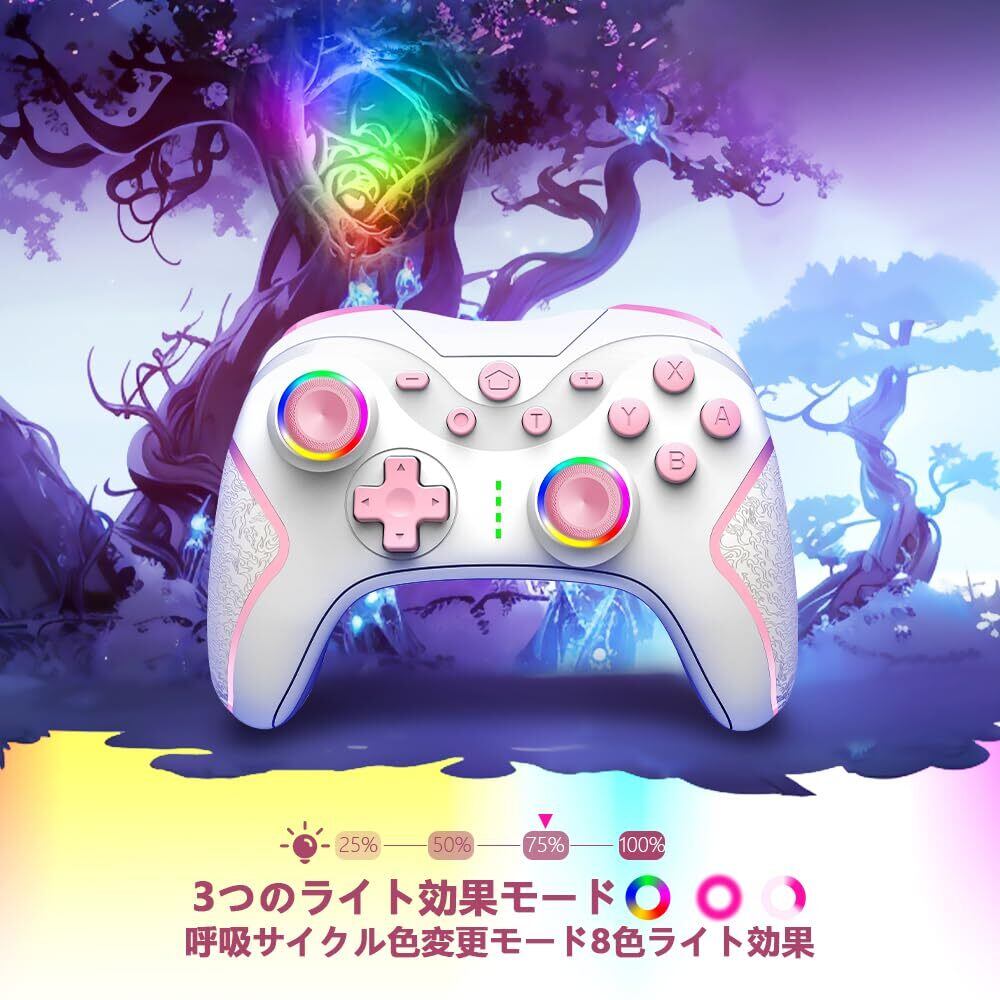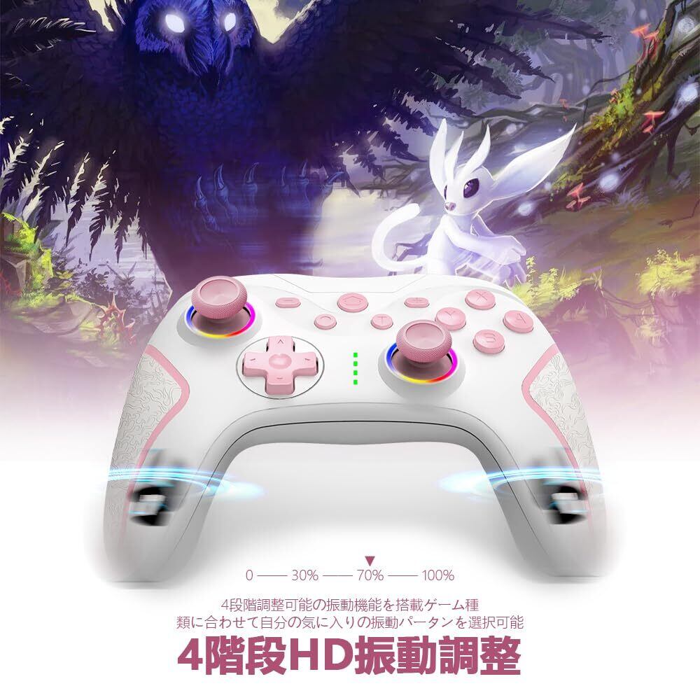 【AceGamer】switch コントローラー switch2 スイッチ コントローラー マクロ機能 自動連射機能 3階段TURBO速度 6軸ジャイロセンサー 4階段HD振動 背面ボタン付き LEDライト 1000mAh大容量 耐久ボタン スリープ解除 Switch/有機ELモデル/LITEに対応 日本語取扱説明書付き (ホワイト+ピンク)