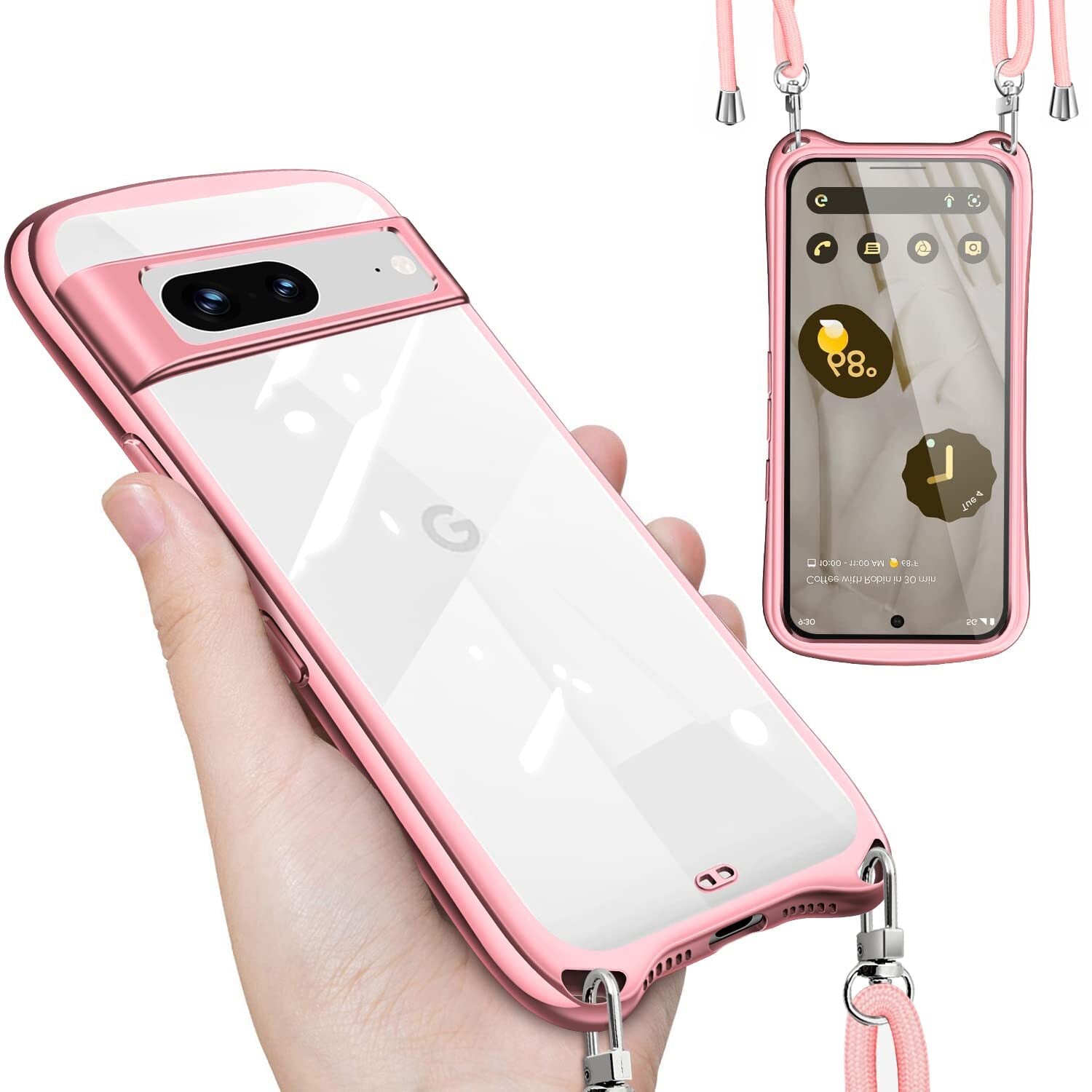 【人気商品】Google Pixel 7a ケース クリア ショルダー ストラップ付き グーグル ピクセル7a カバー 透明 肩掛け 斜めかけ TPU シリコン メッキ加工 耐衝撃 全面保護 薄型 韓国 可愛い 縄掛け スマホケース (ローズゴールド) | ニコニコSHOP