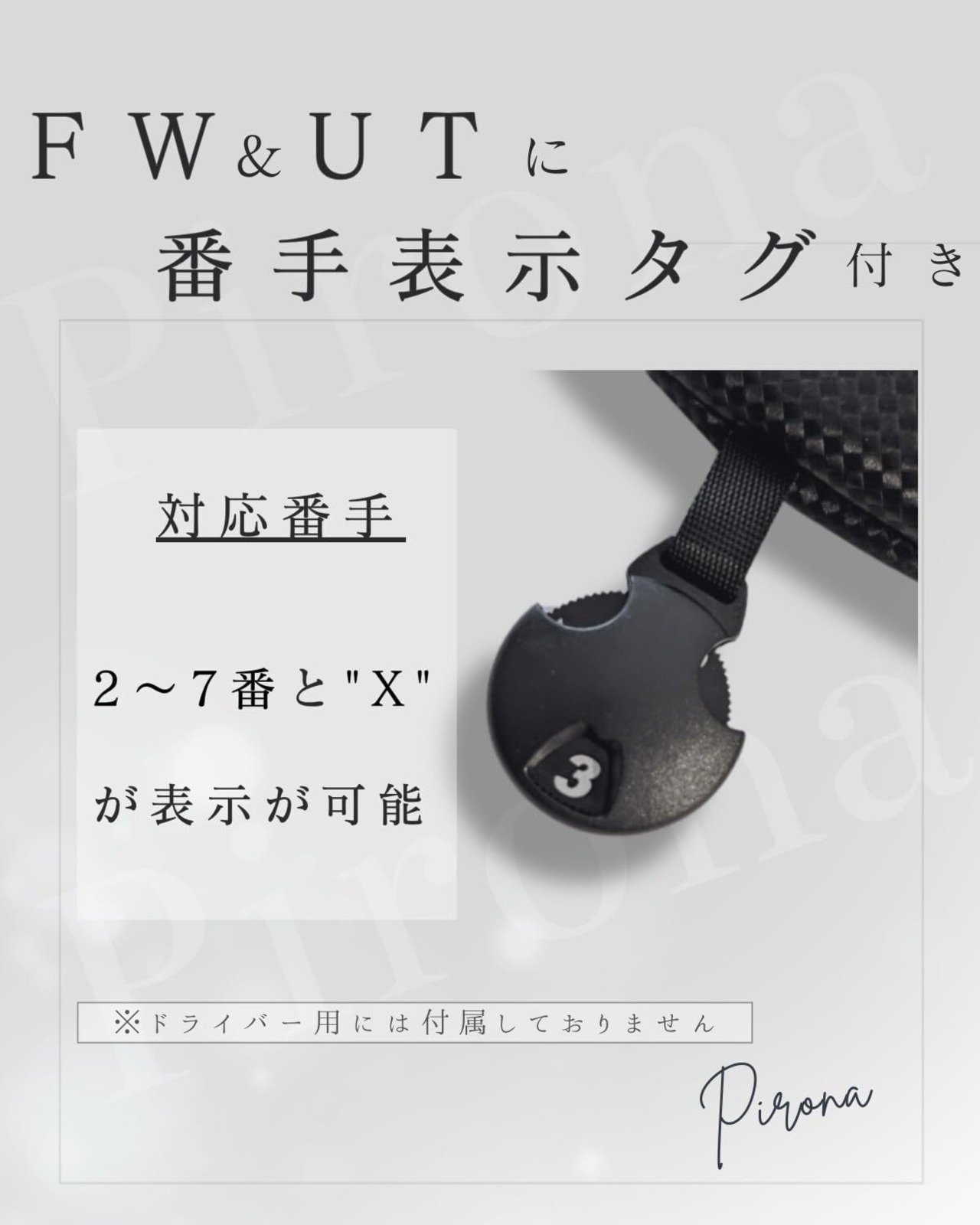 【国内ブランド Pirona】 ゴルフ ヘッドカバー 最高級PVCレザー使用 カーボン柄 ドライバー フェアウェイウッド ユーティリティ 番手表示タグ付き(#2~#7, "X")防水仕様
