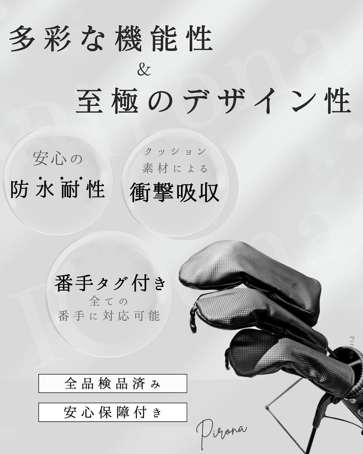 【品質保証・安心の日本ブランド】 Pironaは、日本のゴルフクラブヘッドカバー専門ブランドです。 初期不良や故障などの場合は、迅速かつ丁寧に対応させていただきます。またご購入から30日間は保証付きです。ヘッドカバーは初期不良などあれば全額返金で保証致します。