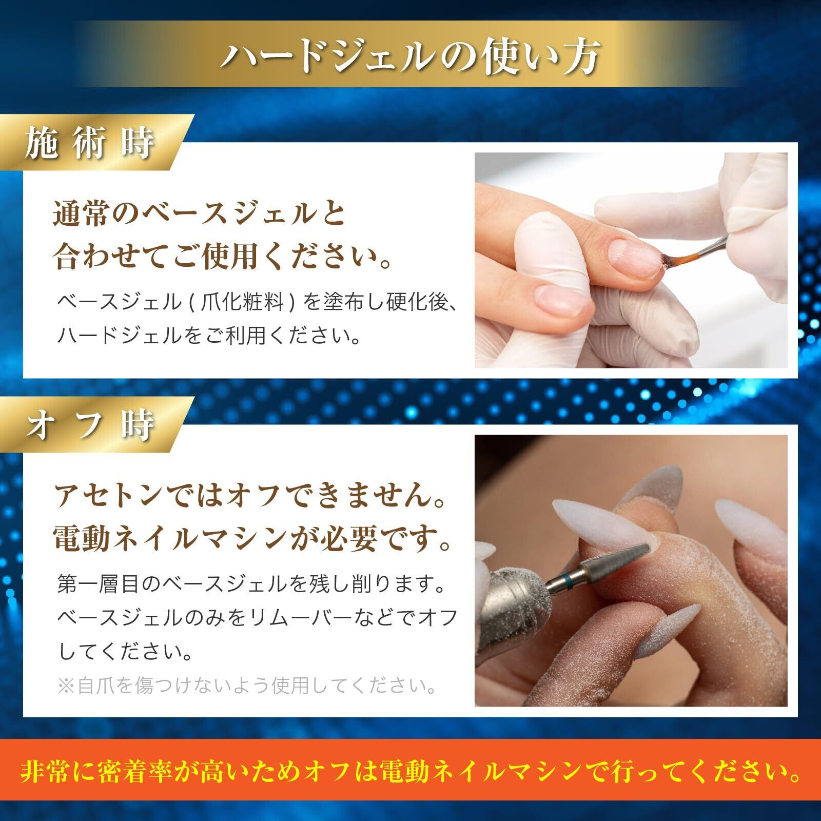 美しく仕上がるサロン仕様のハードジェル。長さだしでも強度があり綺麗なエクステンションジェルをお楽しみください。