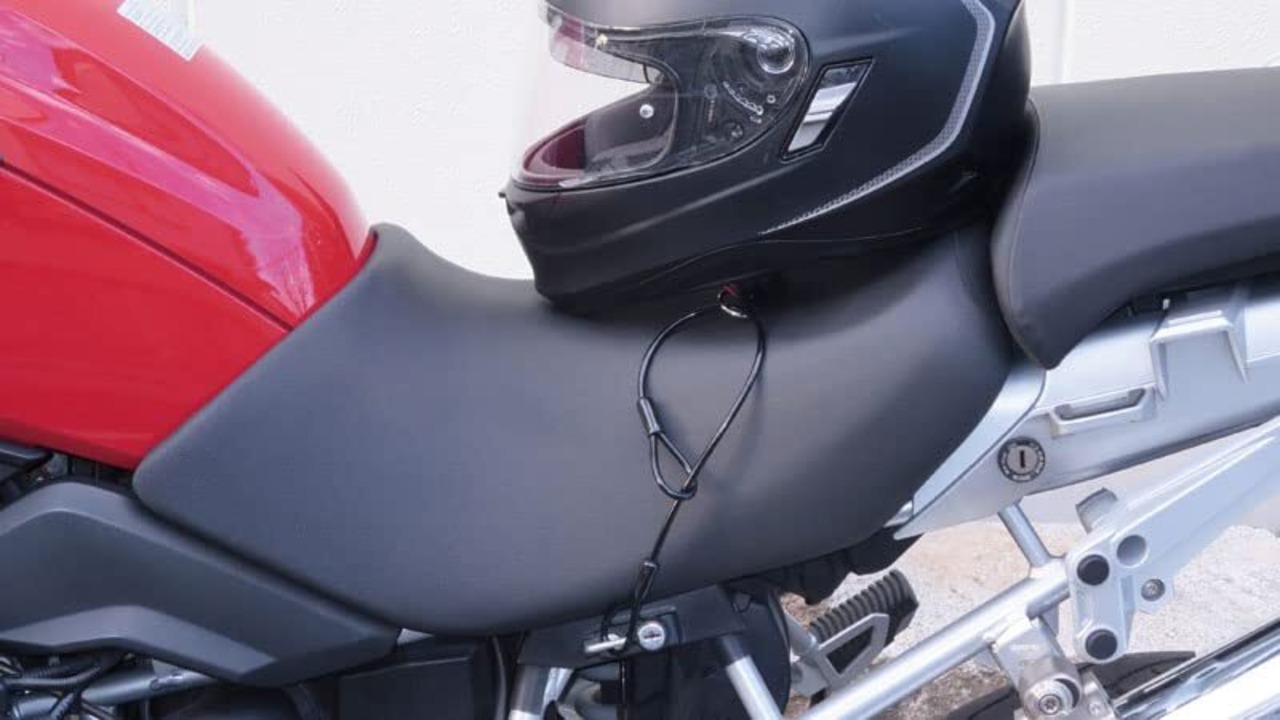 ヘルメットを車体に取り付ける際に余裕を持って固定出来るワイヤーが登場! 2個同時にロックしたり、スクーターのシートフックに固定出来たりする便利アイテム。