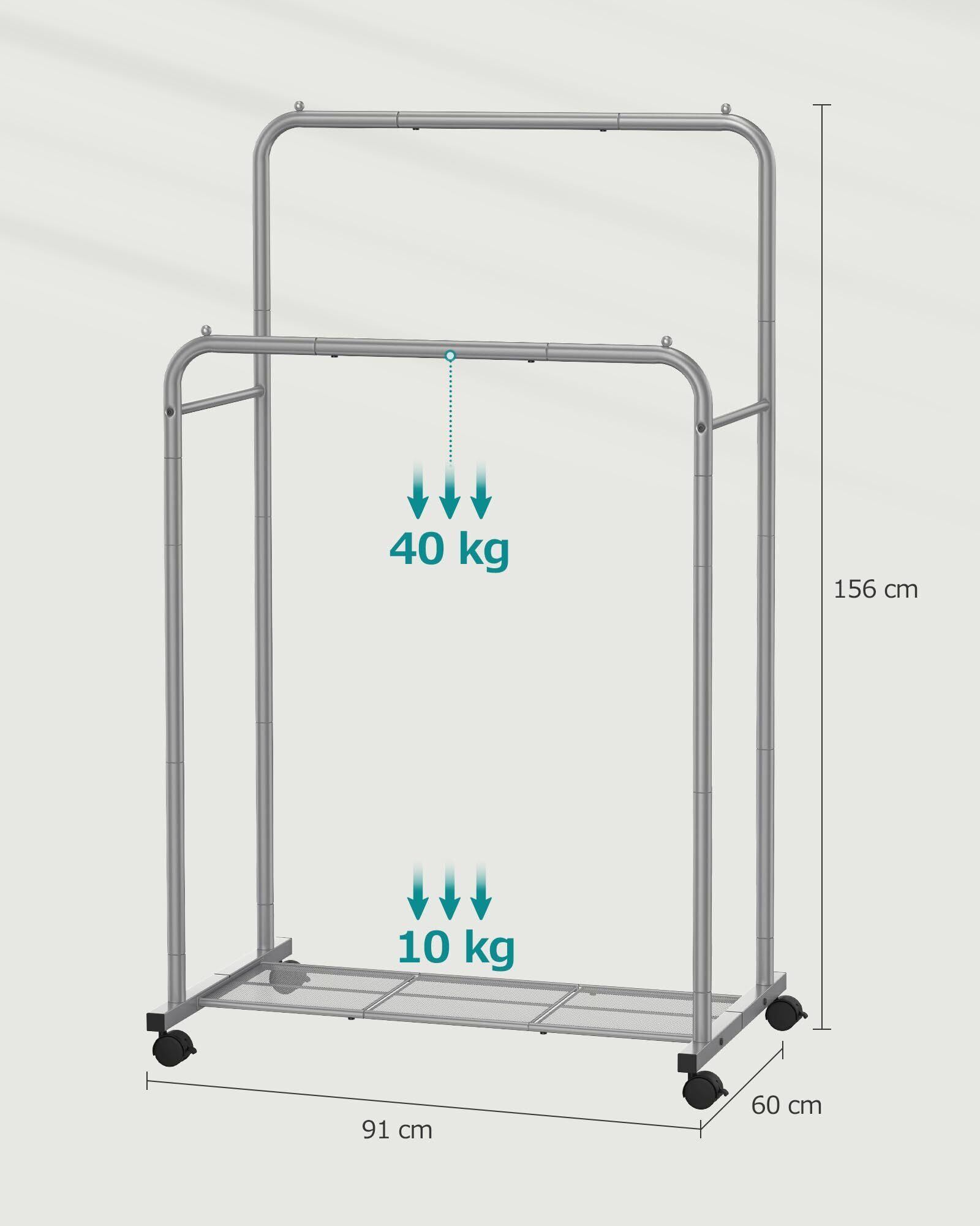 【特価商品】SONGMICS ハンガーラック 2段 棚、キャスター付き 幅91cm 頑丈 室内洗濯物干し 衣類収納 安定性 移動しやすい ちょうどいいサイズ グレー HSR026G01 | ニコニコSHOP