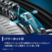 27枚のパワーカット刃で効率的にヒゲをキャッチ&カット。自動研磨システムを搭載。オイル差し不要で常にシャープな切れ味が続く。