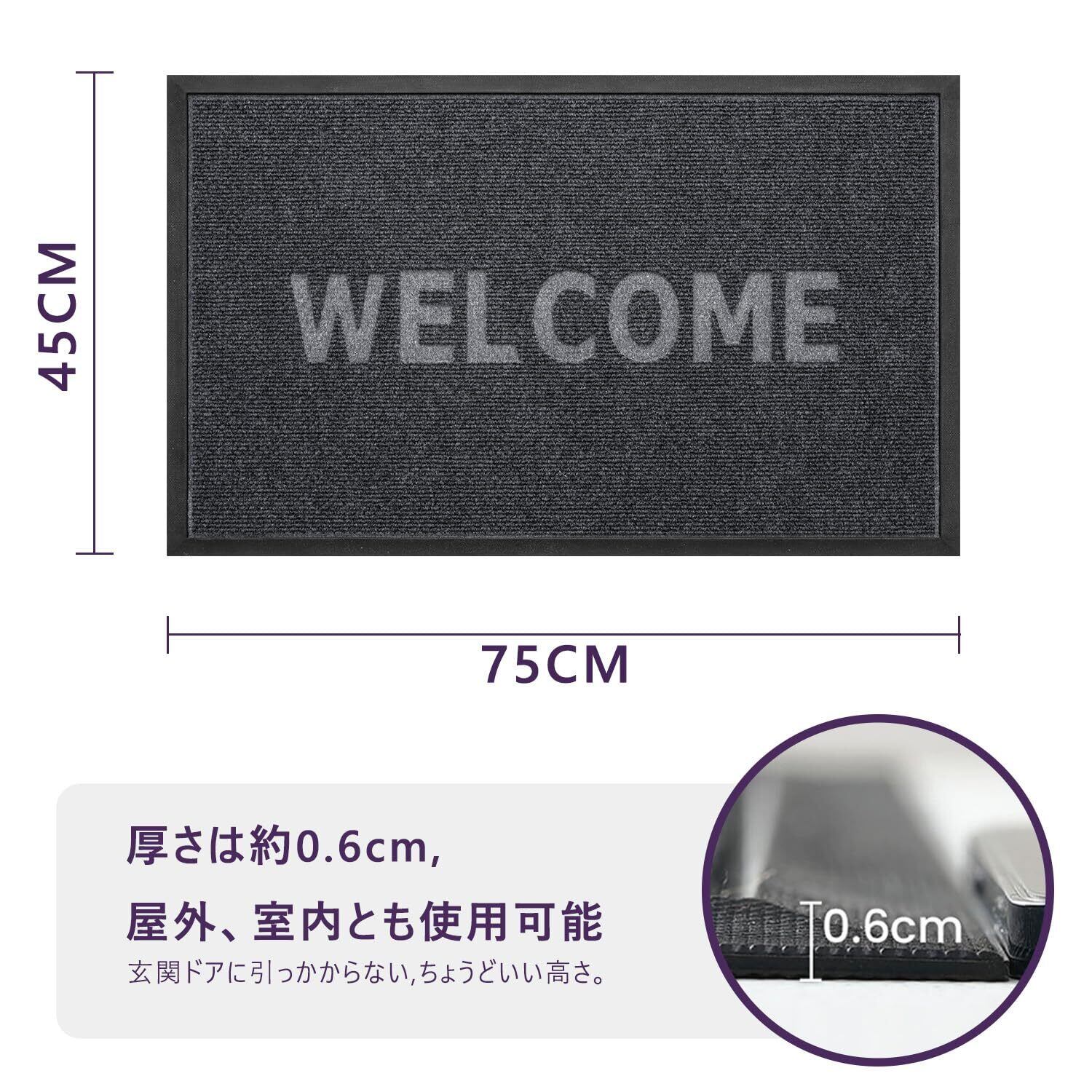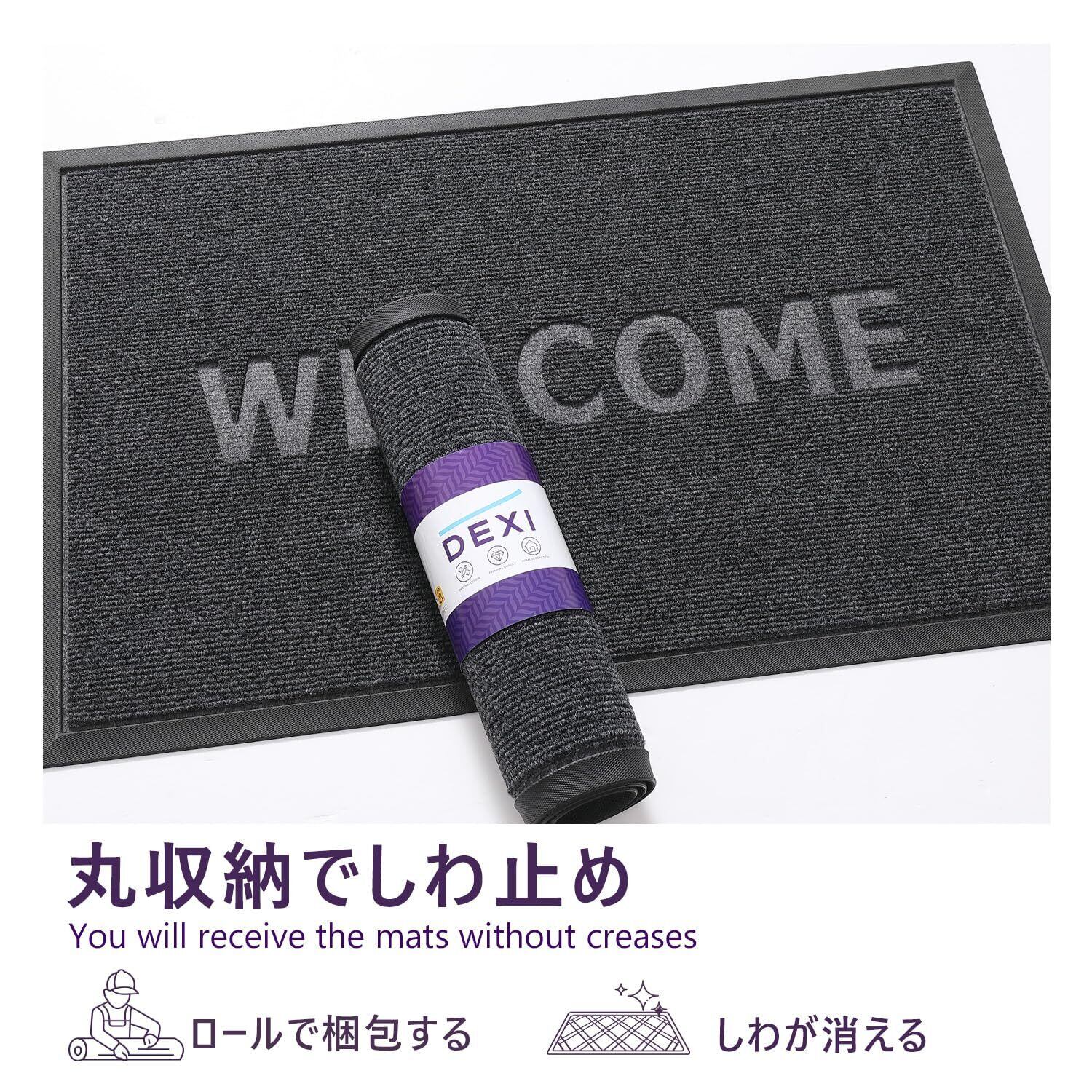 DEXI 玄関マット 屋外 室内 泥落とし 吸水 滑り止め 耐久性 洗える WELCOME 迎え ドアマット おしゃれ ラバー 家庭用 業務用 (45x75cm グレー)