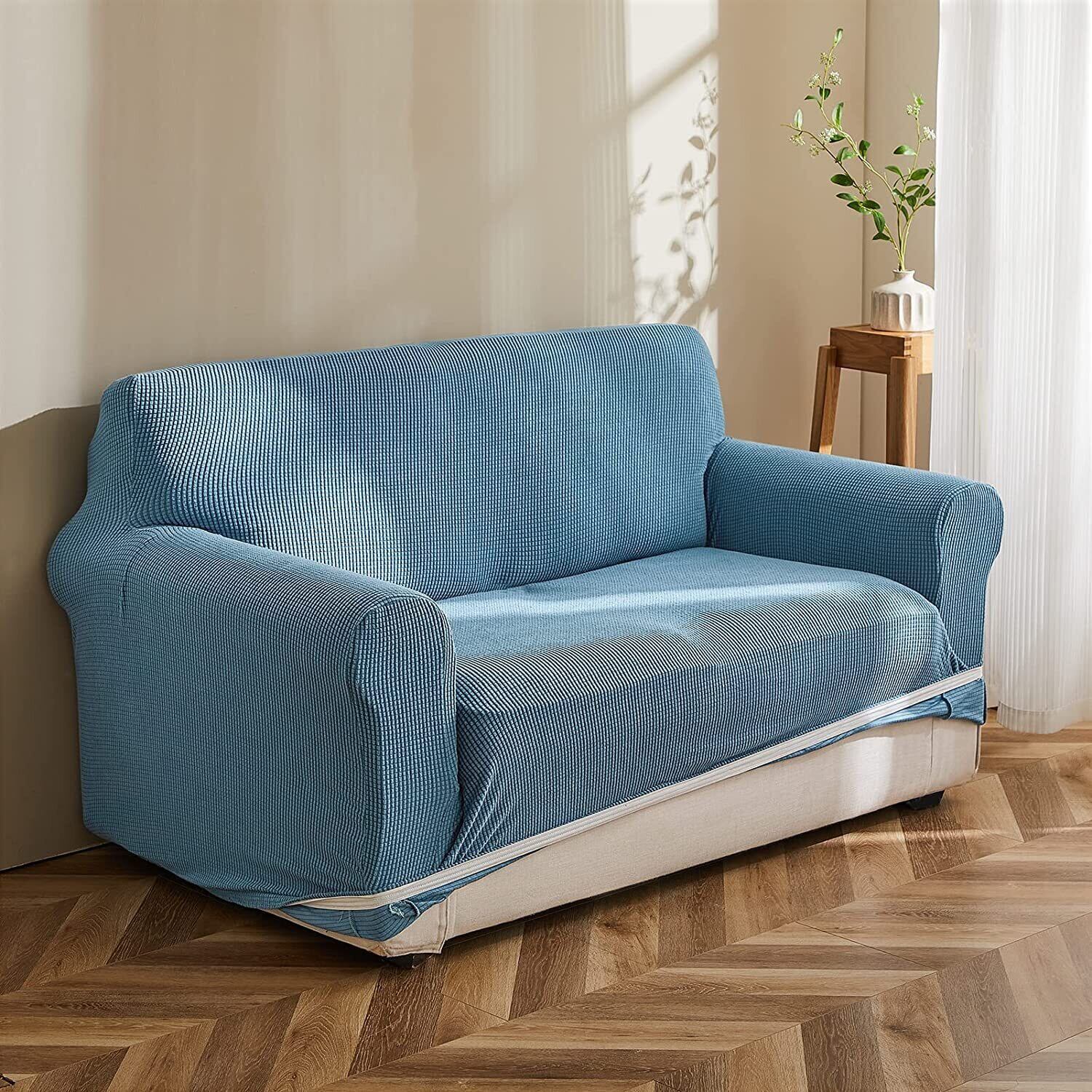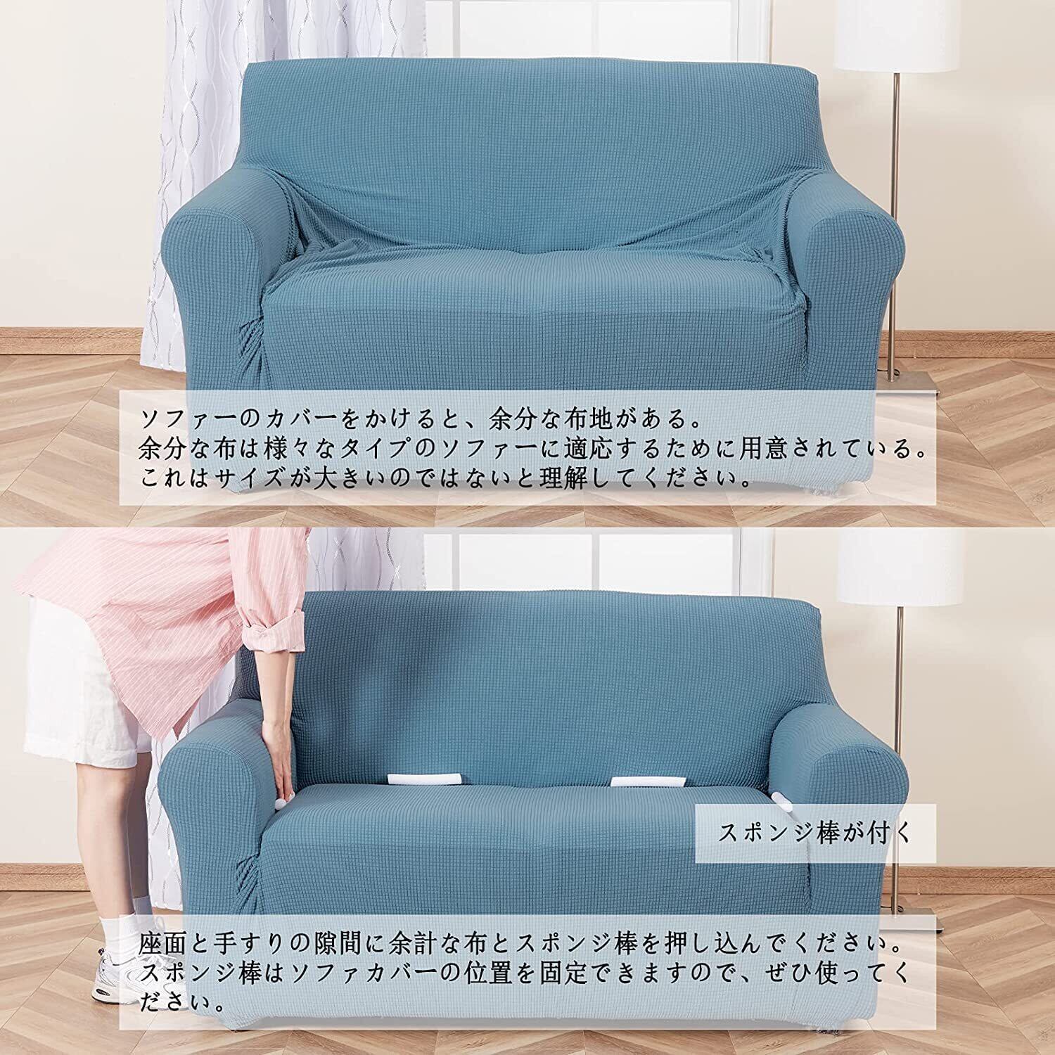 Topfinel ソファーカバー 2人掛け 洗える 肘付き 無地 北欧 ストレッチ 伸びる 伸縮素材伸び良く 滑り止め 柔らかい 犬 猫 傷 四季適用 ブルー