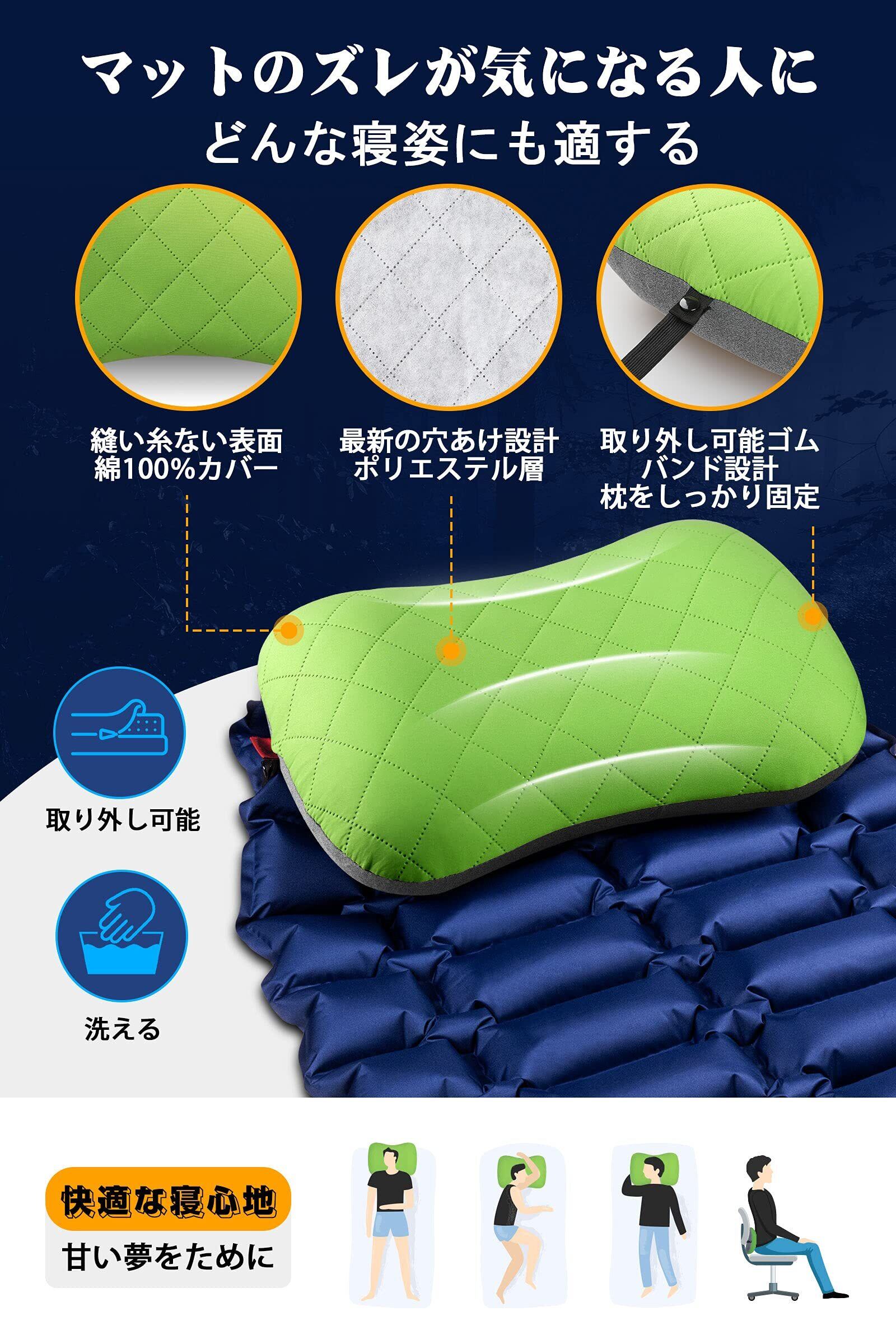 【絶妙な使用感・快適さはここから始まる!】このキャンプ 枕はコットンカバー付きで、通気性、柔らかの触感を提供します。枕カバーが汚され場合、クリーニングのために取り外すことができます。人間工学に基づいたエアー枕は、背骨の自然な曲がりをサポートし、肩こりや腰痛に別れを告げます!