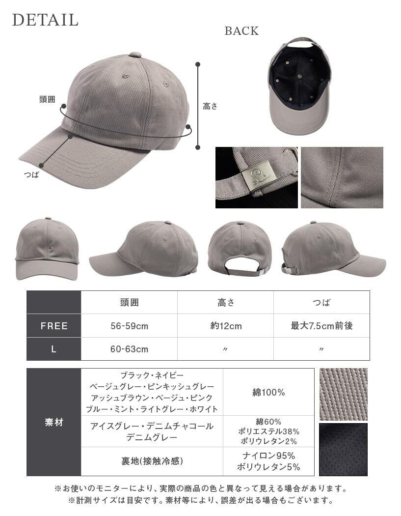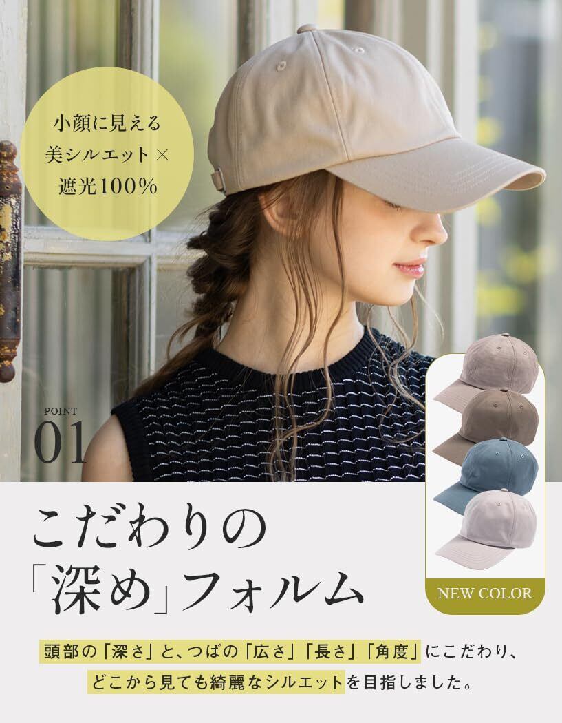 [Loo&c] [ルーアンドシー] 帽子 大きいサイズ こだわり深めキャップ レディース 接触冷感 紫外線対策 uvカット 綿100% キャップ サイズ調整 オールシーズン CAP