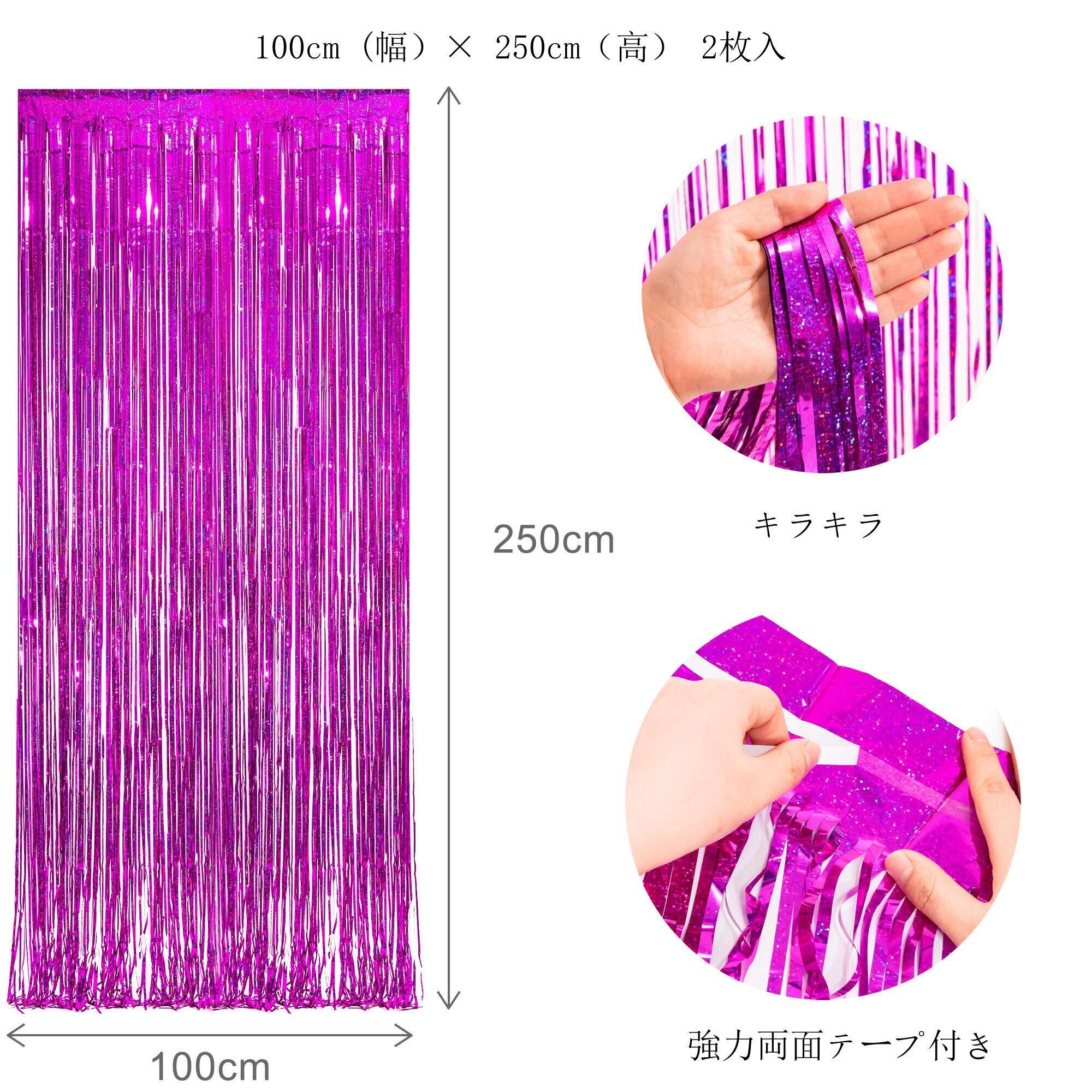 2個セット BRAVESHINE タッセルカーテン キラキラ 背景 明るい光沢 誕生日 飾り付け 100cm*250cm 誕生日 飾り カーテン birthday decorations パーティー デコレーション party decoration (フューシャ)