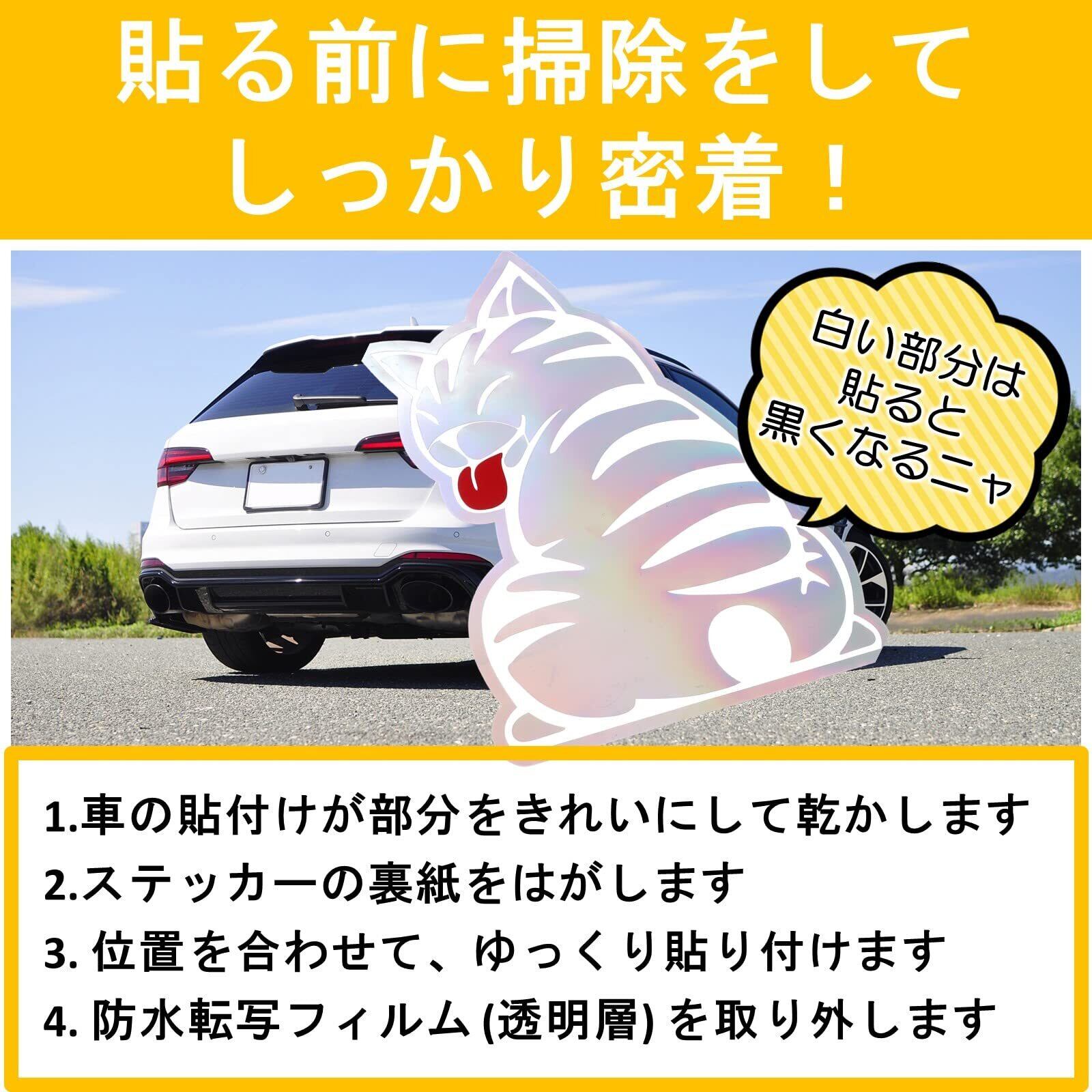 貼り付け方も簡単です。貼り付けたい部分の汚れを落とし、位置を合わせてゆっくり貼り付け、防水転写フィルム(透明層)を取り外すだけ。※ワックスをかけて1週間以内、車が熱くなってしまっているとき、雨の日の作業は避けてください。