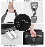 【3way】長さが調節できるショルダーストラップは肩パッドつき、バッグが重いときでも痛くなりにくいよう配慮されます。両側にも持ち手あって、重たい荷物の持ち運びに便利です。