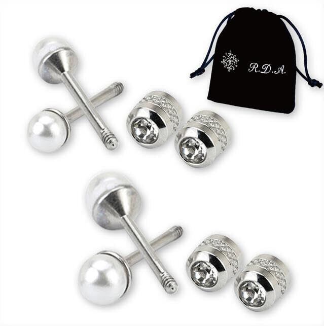 R.D.A. ステンレス ピアス 金属アレルギー対応 つけっぱなし ファーストピアス 3mmと5mmのセット 両耳用